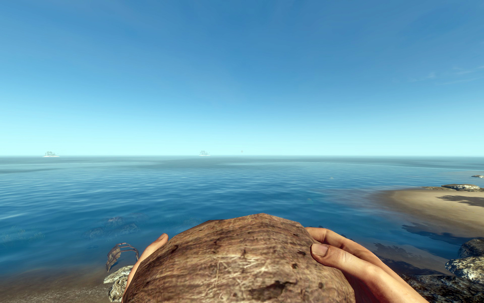 Im Inventar bei Spielstart: ✗, erhält man indem man eine grüne Kokosnuss mit Messer oder Axt aufschlägt