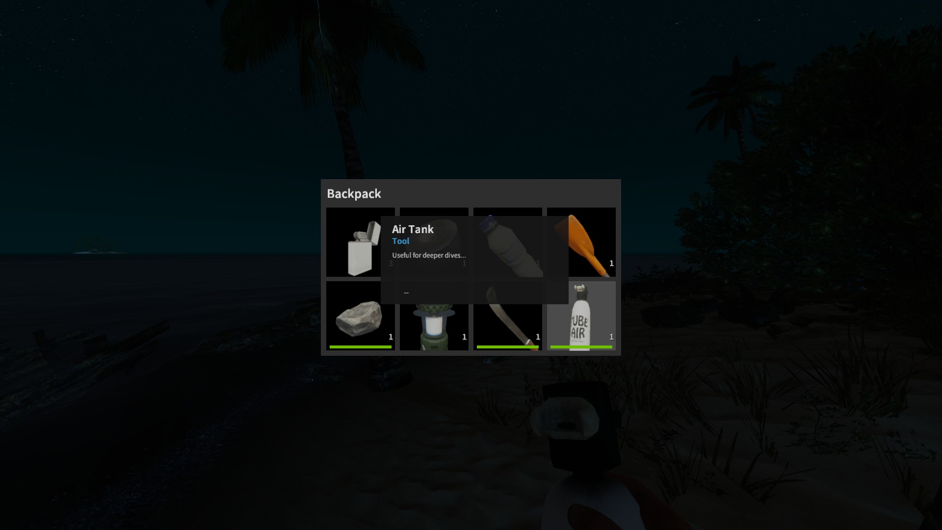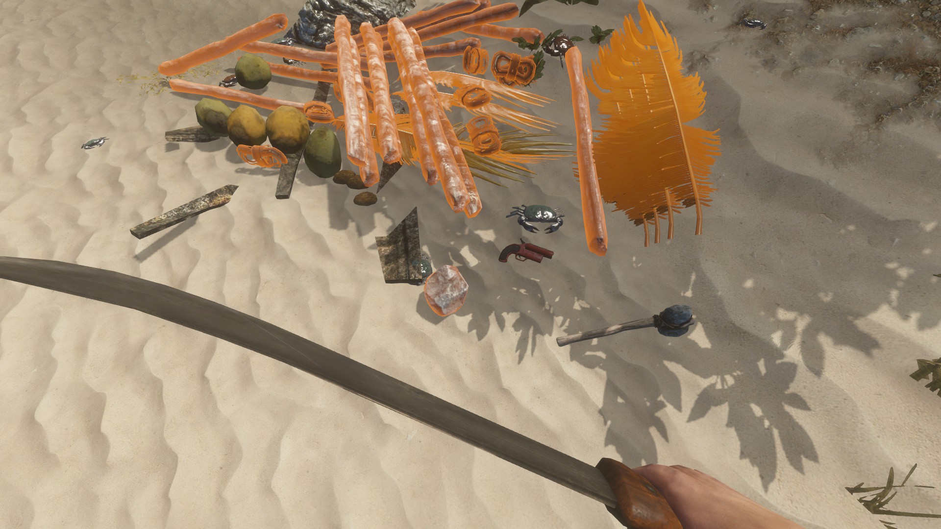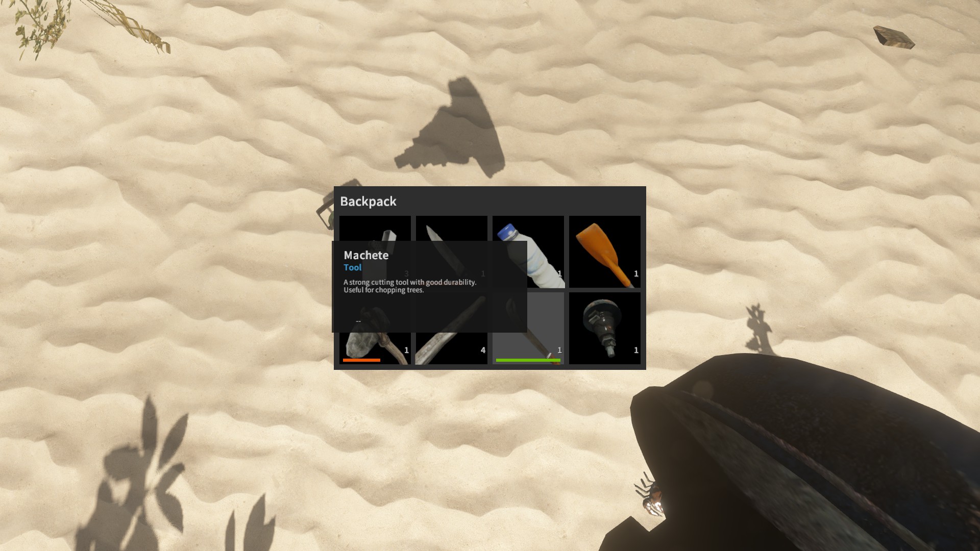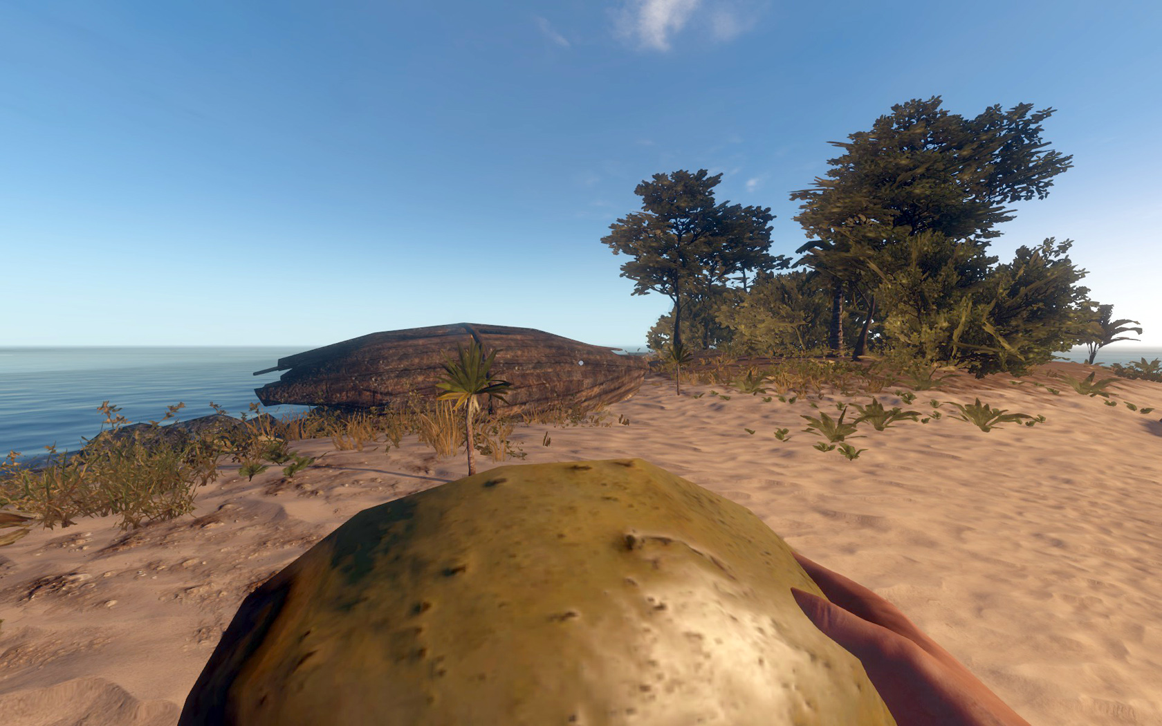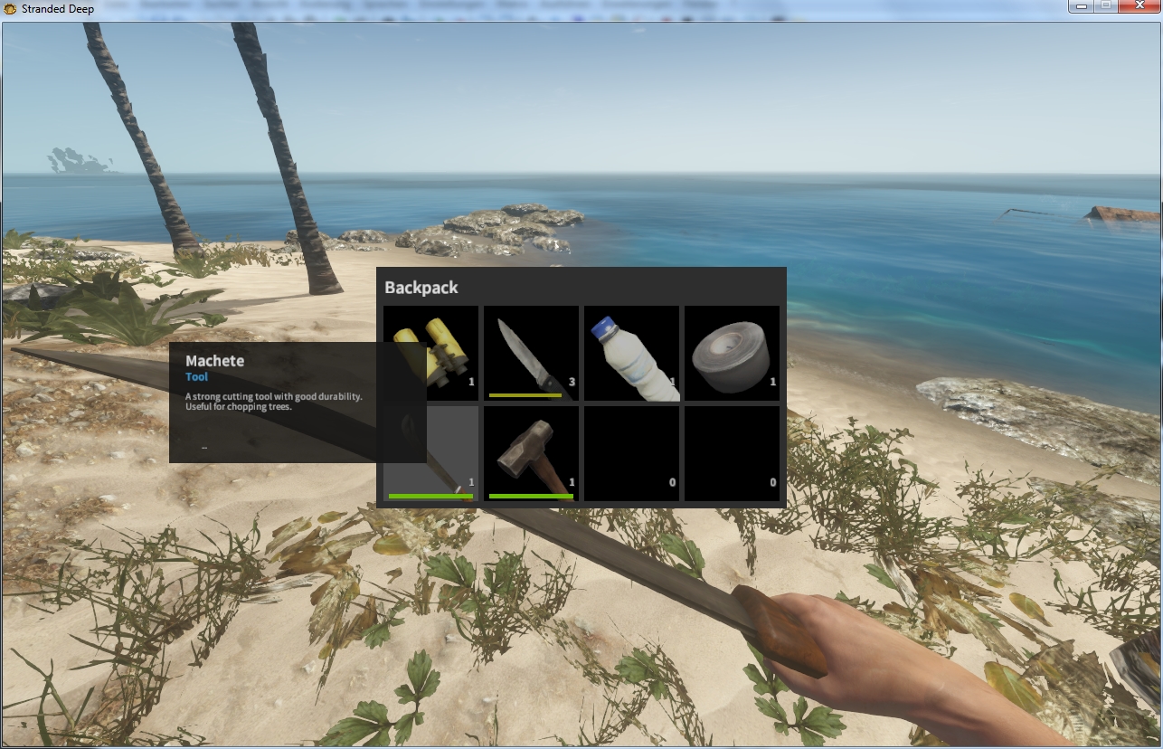 Im Inventar bei Spielstart: ✗, erhält man indem man eine grüne Kokosnuss mit Messer oder Axt aufschlägt