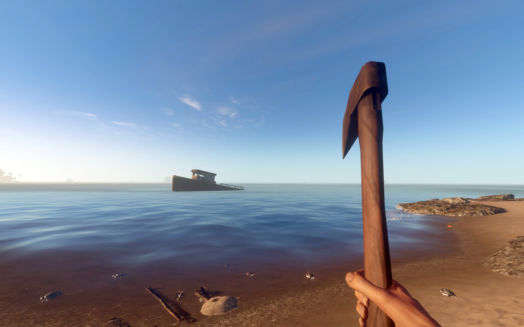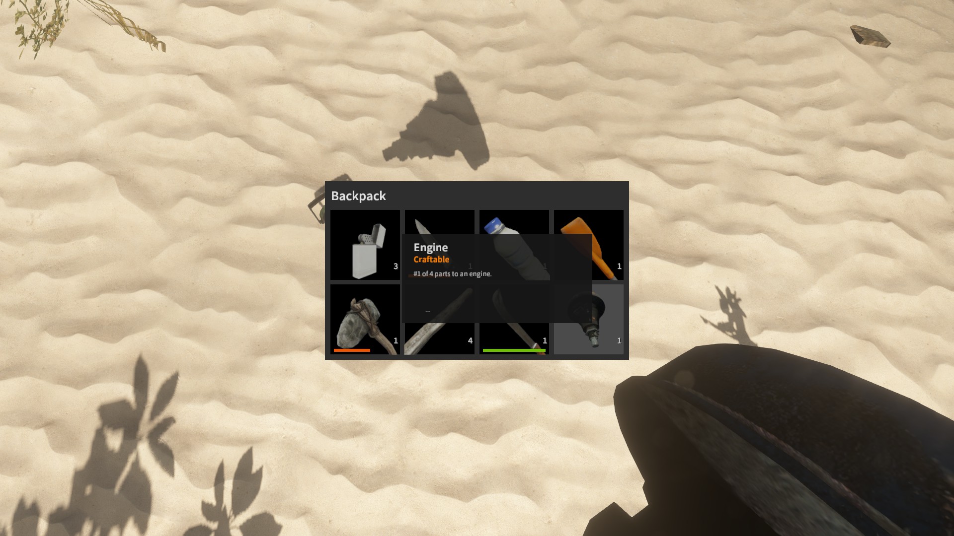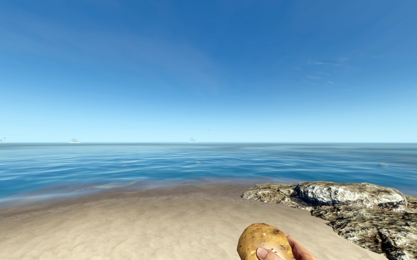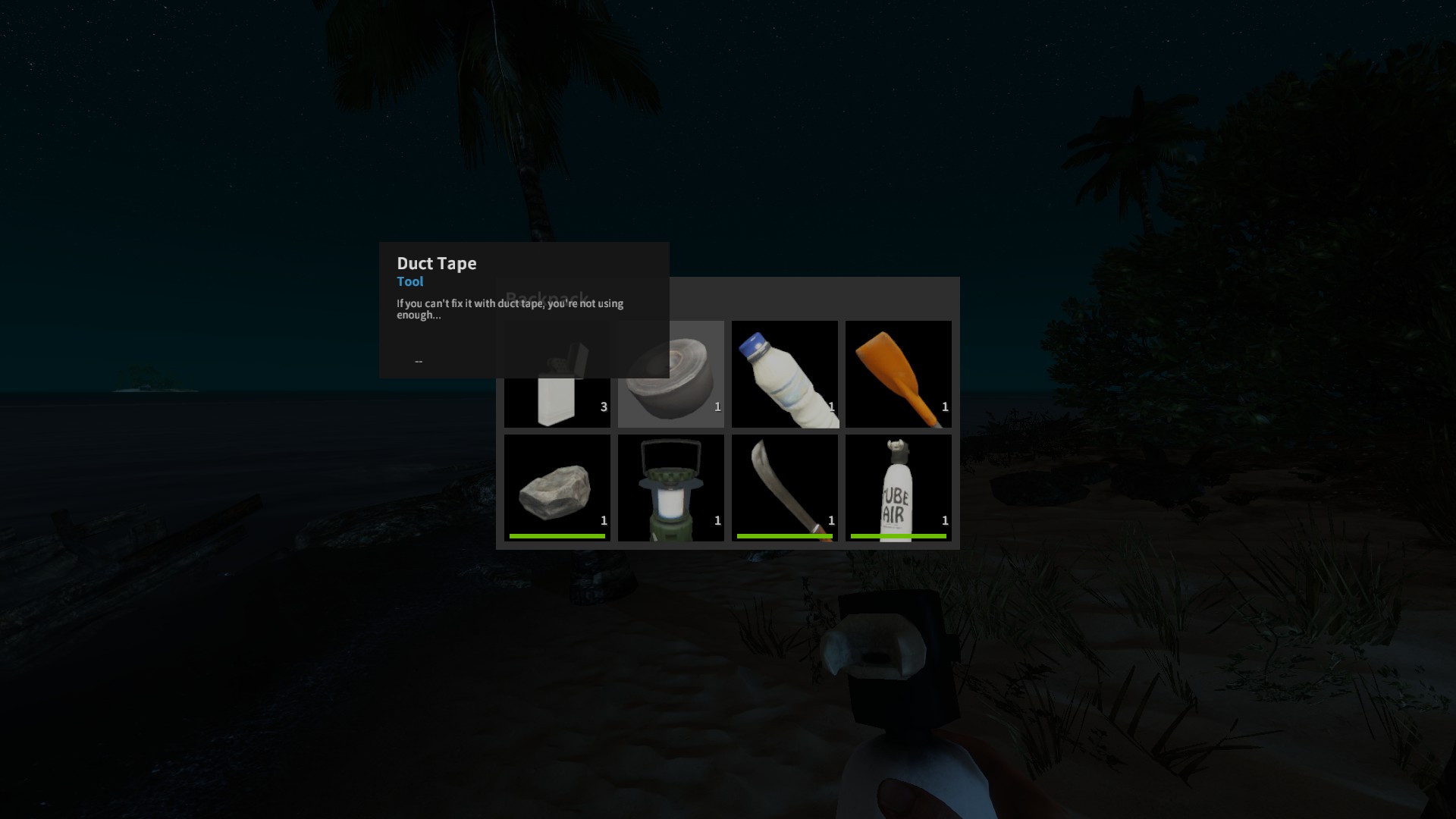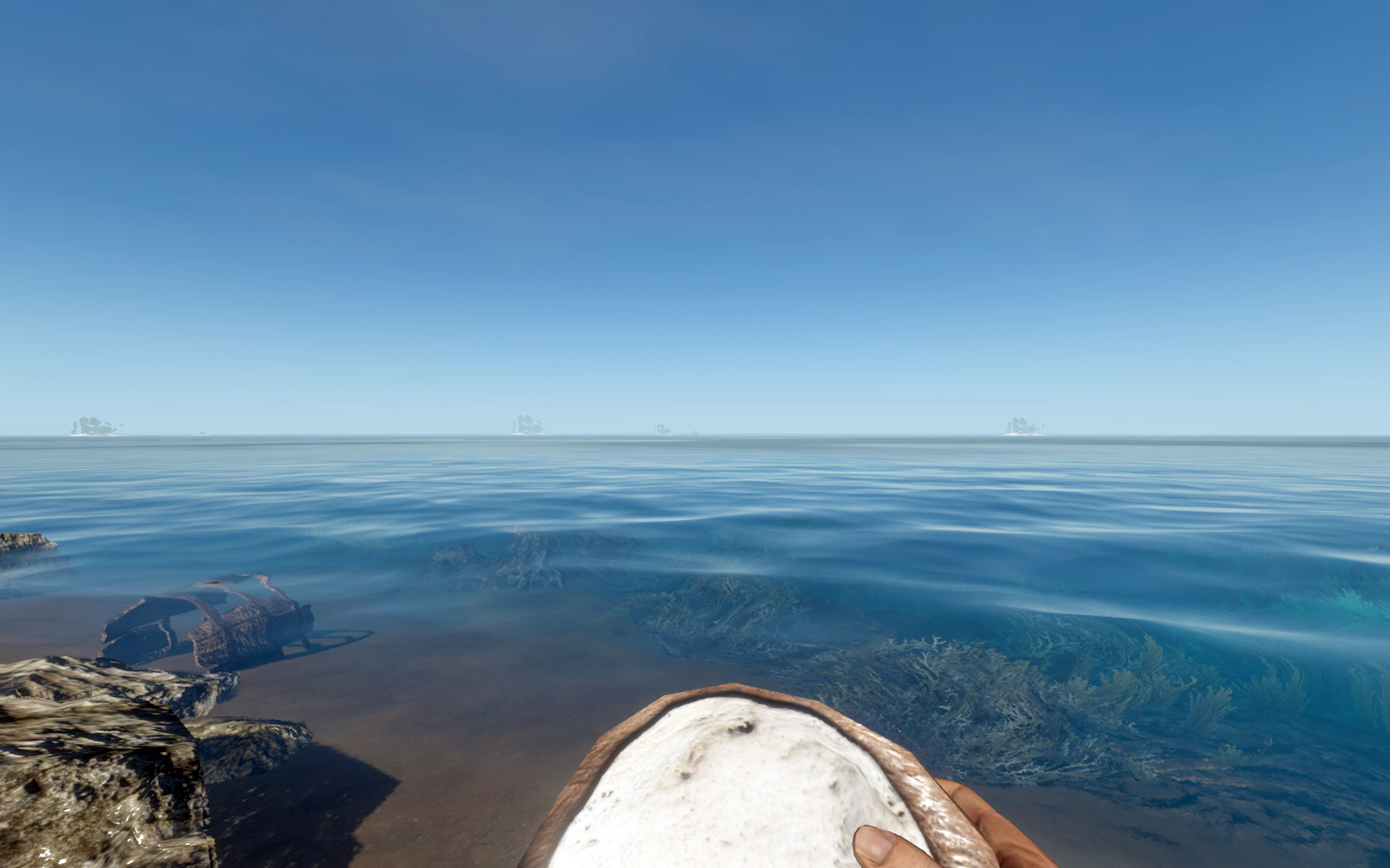 Im Inventar bei Spielstart: ✗, erhält man indem man eine grüne Kokosnuss mit Messer oder Axt aufschlägt