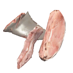 Zweck: Nahrung, muss gekocht werden. Setzt sich aus Flossen und Fleischstück zusammen