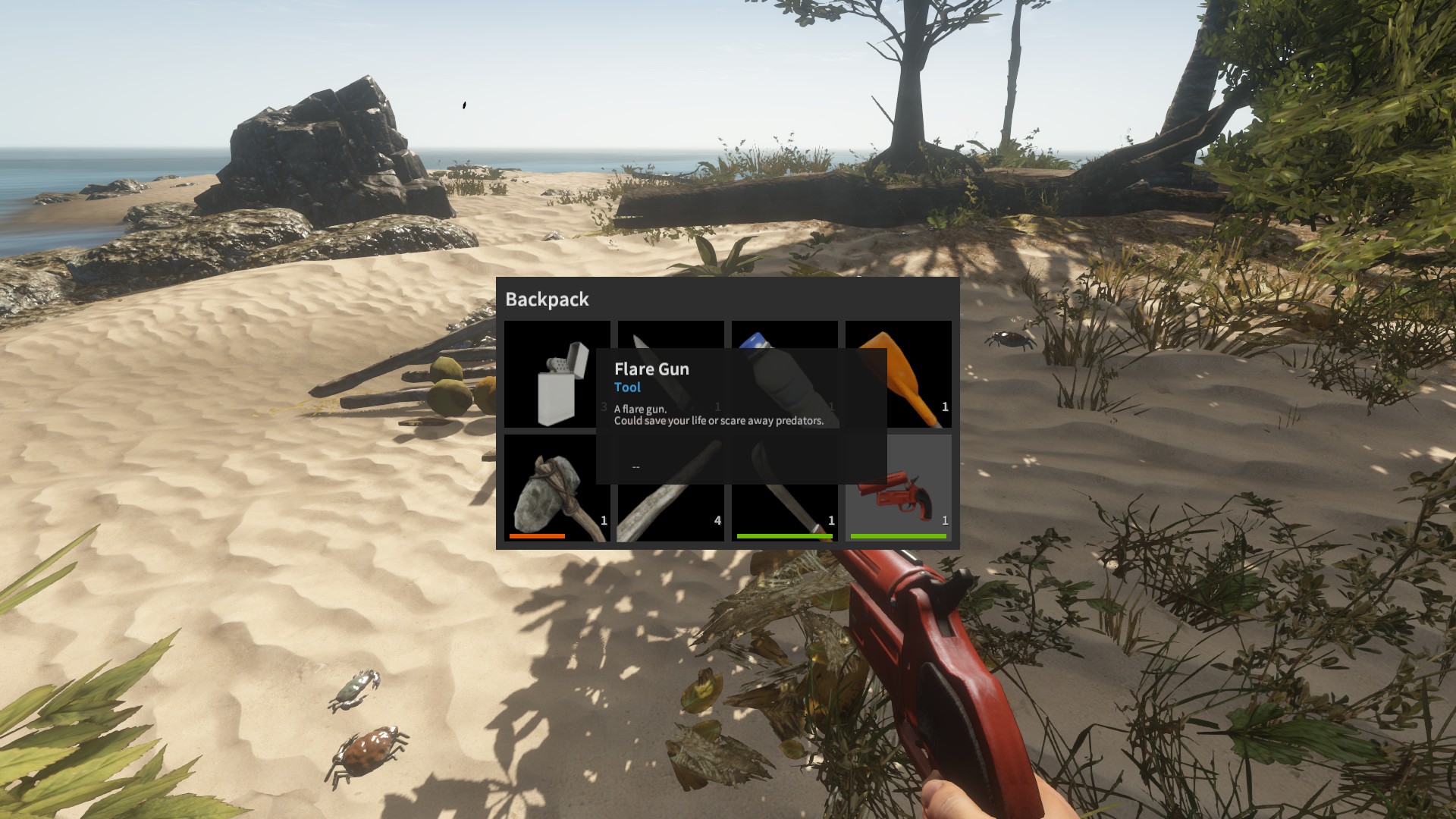 Im Inventar bei Spielstart: ✗, bekommt man nachdem man einen Hai getötet hat