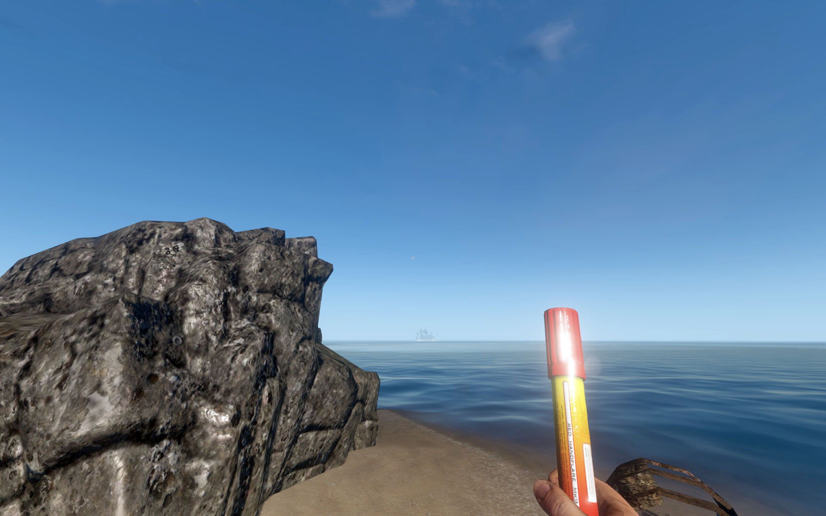 Zweck: Durch Mausklick während man die Leuchtfackel haltet wird diese entzündet, spendet aktuell jedoch (noch) kein Licht und funkelt nur