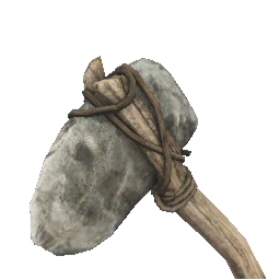 Im Inventar bei Spielstart: ✗, bekommt man indem man einen Stein mit Axt oder Messer zerschlägt