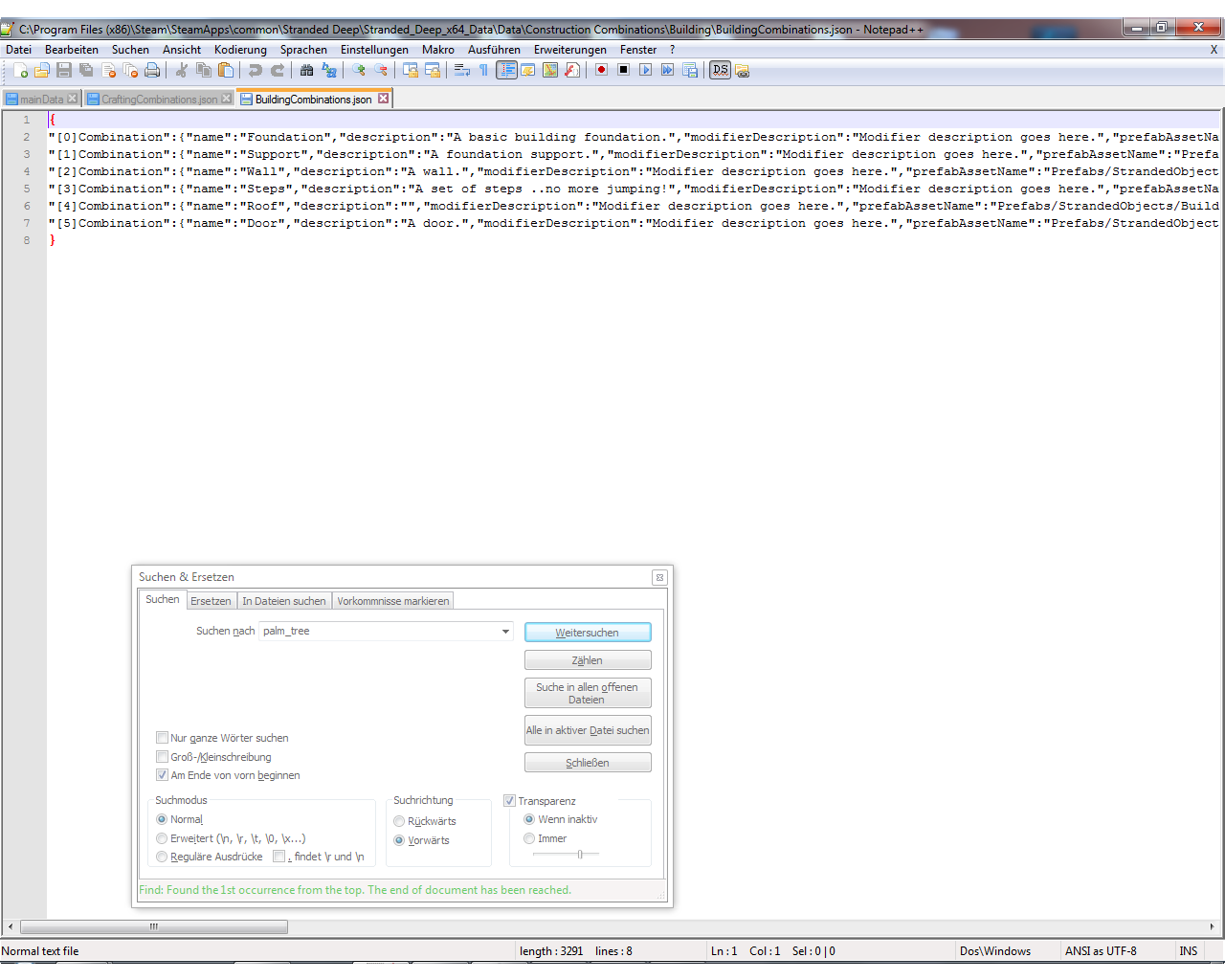 "prefabAssetName":"Prefabs/StrandedObjects/Trees/Balanced/PALM_TREE_4.prefab" - Dies ist das Kernstück des Craftings,