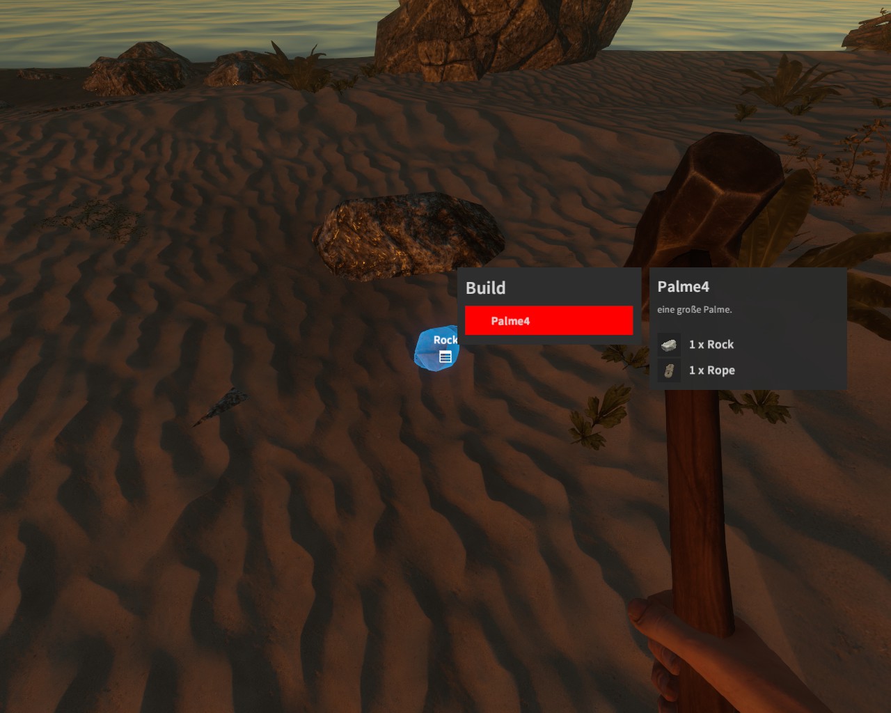 Wenn wir das ganze jetzt speichern, können wir im Spiel eine große Palme aus einem Stein craften.