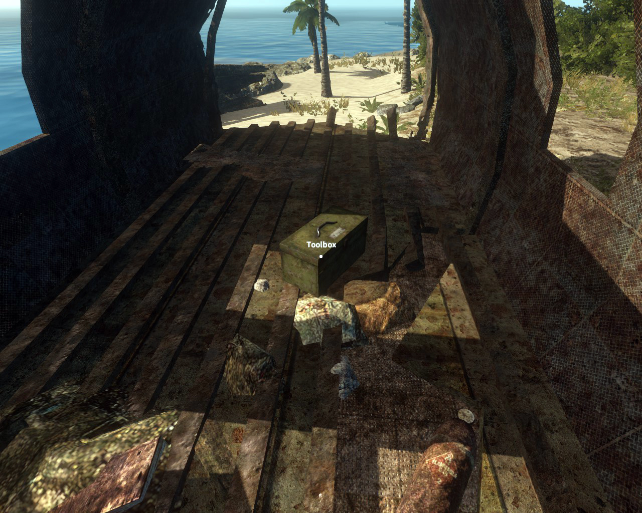 - unter der zerstörten Kapitänskajüte auf dem Oberdeck, befindet sich ein Werkzeugkasten (Toolbox, Bild 3)