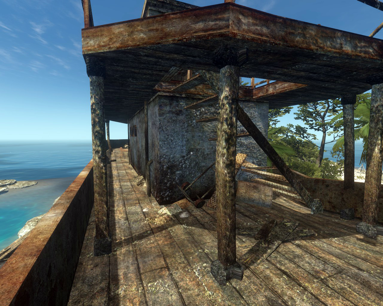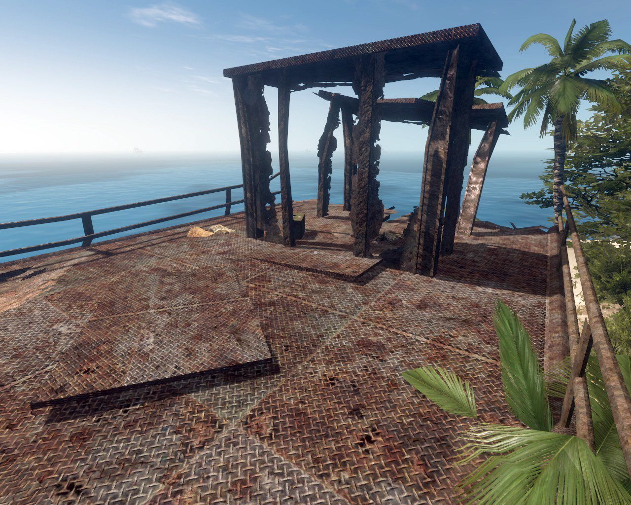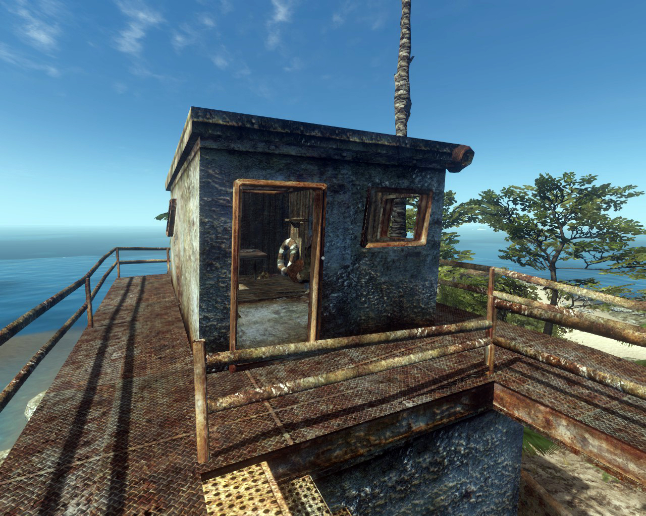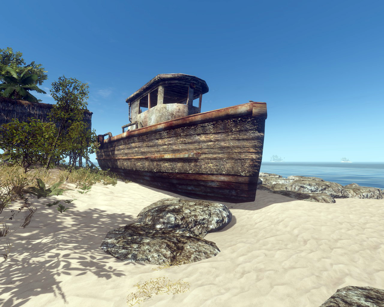 Das Momentan größte Wrack im Spiel. Unterdecks sind nicht betretbar. Ganz oben auf dem Oberdeck, befindet sich der Kontrollraum oder auch Brücke genannt, dieser ist durch eine Tür in Richtung Bug zu betreten (Bild 1 und 2). Unter dem Kontrollraum befindet sich eine Mannschaftskajüte. Diese ist durch eine Tür auf der Backbordseite des Schiffes betretbar,die Tür in Richtung Heck funtioniert nicht (Bild 1 und 3).