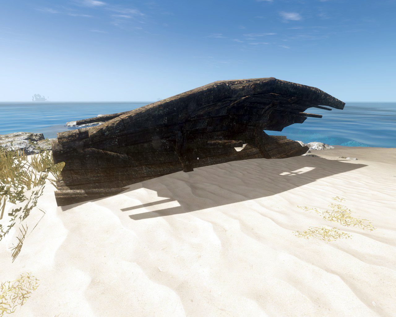 Dieses Wrack ist das selbe wie Shipwreck_5a, nur mit einer leichten Neigung. Alle Merkmale und Fundorte bleiben die Gleichen.