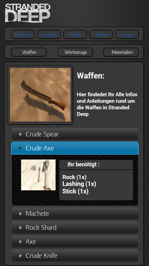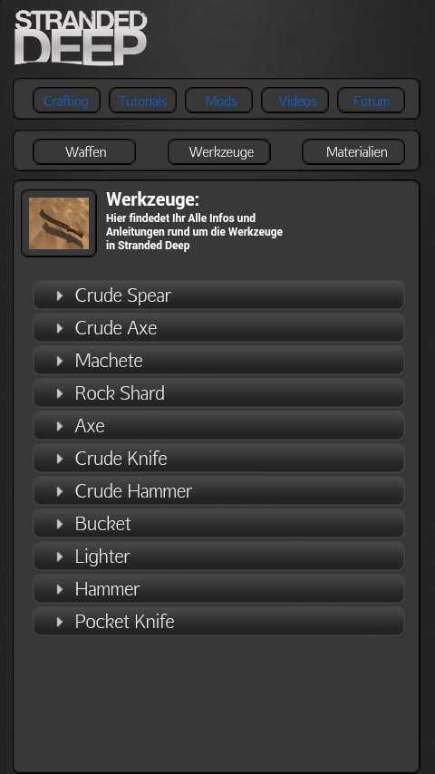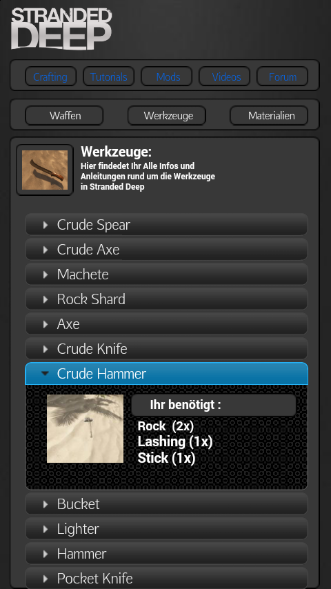 Die App beinhaltet News,Downloads,Videos, alle Crafting "Rezepte" und vieles mehr !