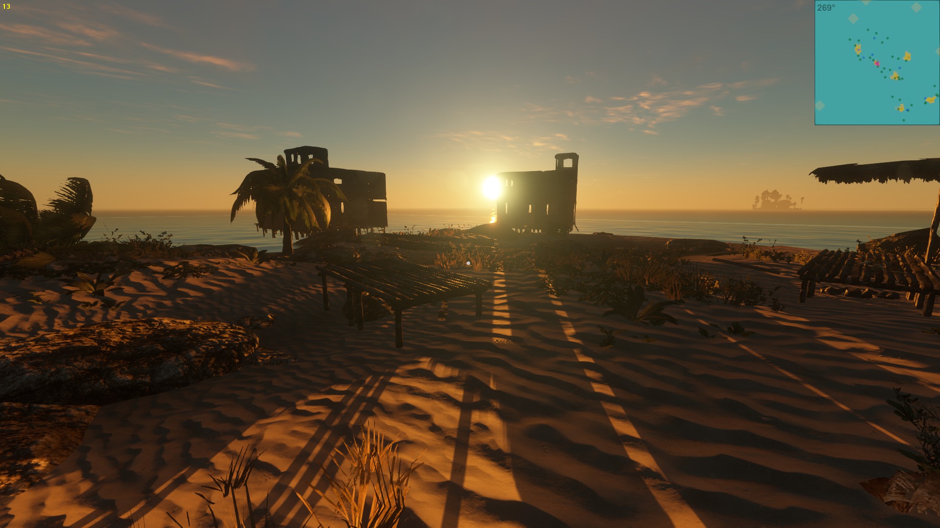 Was die Grafik angeht, bin ich da eher geteilter Meinung. Der Himmel und das Meer (Wasser) sehen toll aus. Auch die Texturen unter 25m sind bei mir immer sehr scharf...alles über 25m an Land finde ich aber bissl entäuschend. Allein schon, dass Objekte auf so kurze Distanz reinploppen, geht für die heutige Zeit gar nicht. Genauso, wie das Standardbild für entfernte Inseln. Ich versteh auch nicht, warum sie die eigentlich schönen Bodenpflanzen wieder entfernt haben...man hätte so schön zwei verschiedene Inseltypen schaffen können (Trocken mit dem jetzigen Gras, Tropisch mit den damaligen Pflanzen). Es ist auch nicht wirklich schön, dass die kleinen Fische teilweise in der Luft schwimmen, wenn grad ein Wellental vorbeizieht. Kann man die nicht generell 1m tiefer schwimmen lassen? Und warum werden bereits vorhandene Dinge im Spiel wieder entfernt (Palmen, Haie, Krabben, etc.)? Es sollte doch das Ziel sein, ein immer umfangreicheres Spiel zu entwickeln.