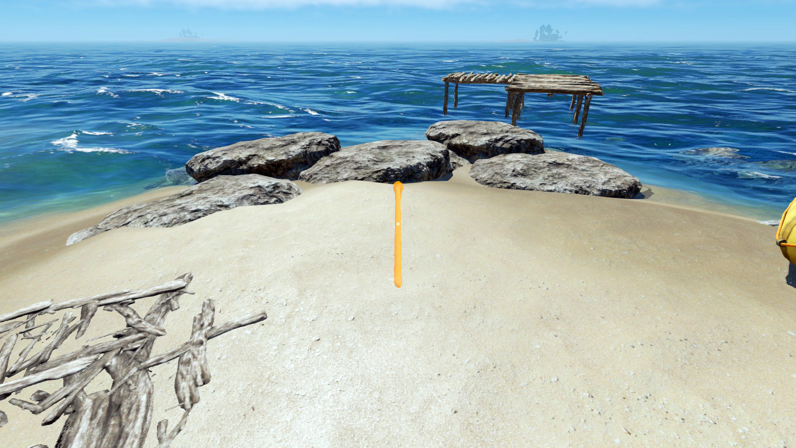 Und um Fässer/Bojen oder Reifen bewegen zu können, musst du diese zunächst freischlagen.