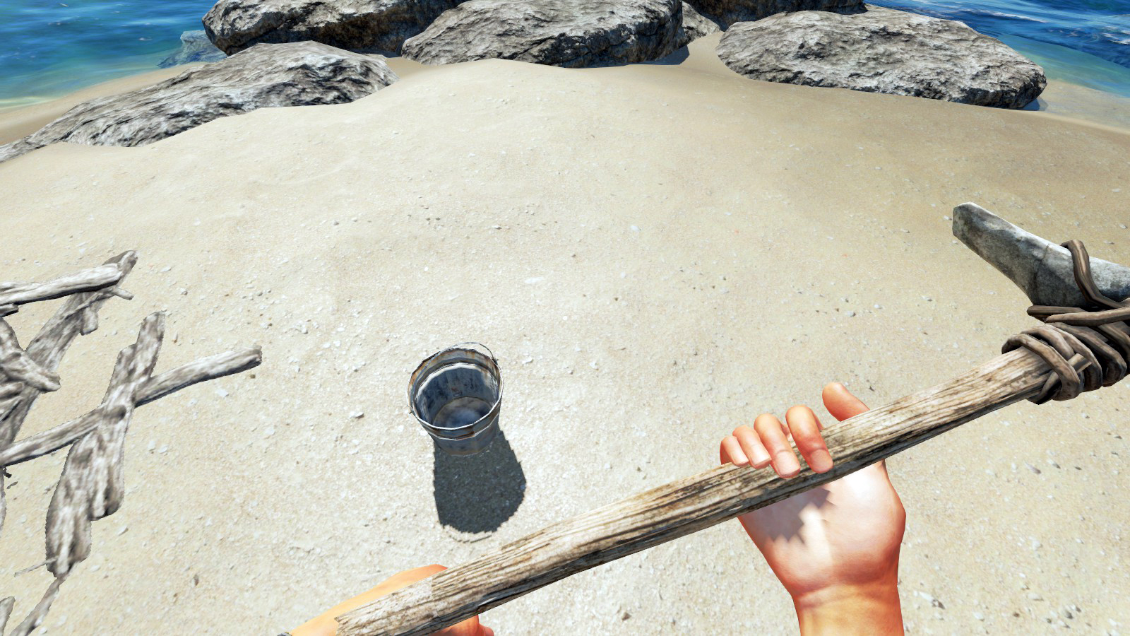 Hast du mit der neuen Version einen neuen Spielstand angefangen? Bei mir lag auf jeder Insel mindestens ein Eimer am Strand. Auf meiner Startinsel sogar gleich zwei (und nein Axt, die habe ich nicht selbst erstellt
