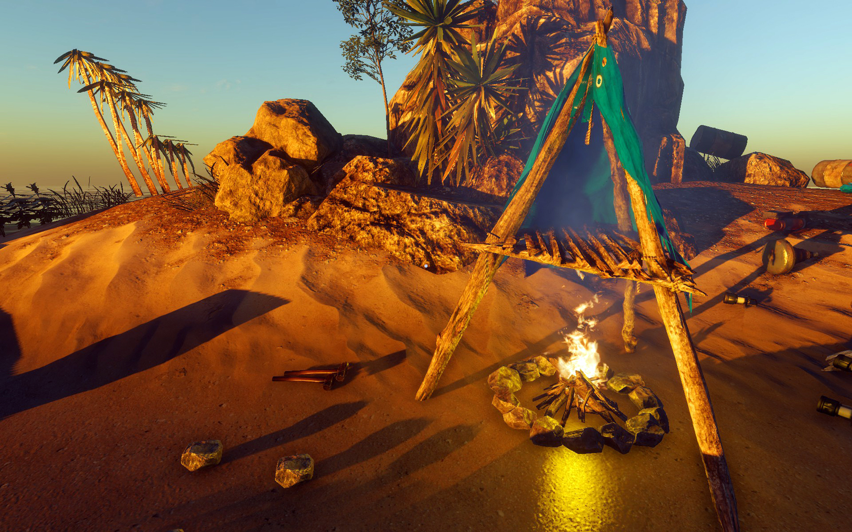Die Wasserflasche und das Messer, das man ab Spielbeginn besitzt, haben wir mit dieser Version entfernt, so dass man angehalten ist das Steinmesser herzustellen um Pflanzen zu ernten oder Dinge zu durchtrennen. Es ist ein ziemlich primitives Werkzeug, ist für die Sammlung von Resourcen bis man bessere Geräte herstellen kann, ausreichend. Trinkbare Kokosnüsse lassen sich nun wie die Wasserflasche zuvor nachfüllen, besitzen jedoch ein geringereres Volumen. Ein wenig haben wir noch die Lagerfeuermechaniken verändert, die ihr mit den anderen Erwähnungen in den Patchnotes unten nachlesen könnt.