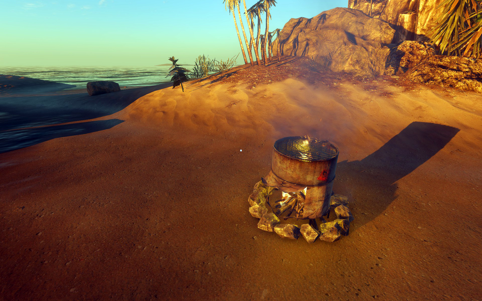 Dazu haben wir noch ein neues System um den Verderb von Nahrungsmitteln aufzuhalten: Es kann nun eine Räucherkammer hergestellt und an das Lagerfeuer mit Grube (Feuer Stufe 2) gehängt werden um Fleisch zu konservieren. Sobald ein Nahrungsteil geräuchert wurde, kann es nicht mehr verderben. Hierbei ist es ganz wichtig zu beachten, dass der Räuchervorgang bei größeren Fleischstücken auch länger dauern kann. Krabben und Haifischfleisch können bis zu 12 Stunden benötigen, was bedeutet, dass nach erfolgreichem die Nahrung so schnell wie möglich geräuchert werden sollte damit die Nahrung nicht verdirbt bevor sie geräuchert werden konnte.