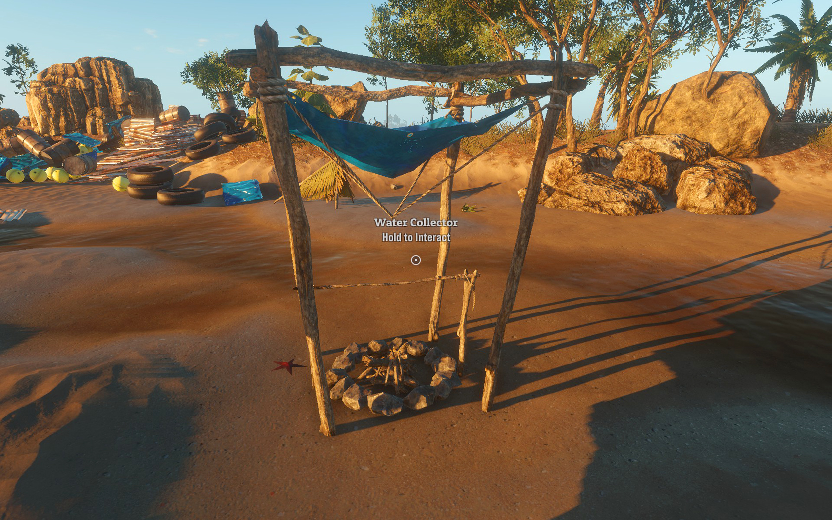 - Nun lässt sich ein Wassersammler herstellen, mit dem man Salzwasser vom Meer sammeln und abkochen kann. Um den Sammler an Feuerstellen anhängen zu können, wird mindestens eine Feuerstelle Stufe 2 benötigt.