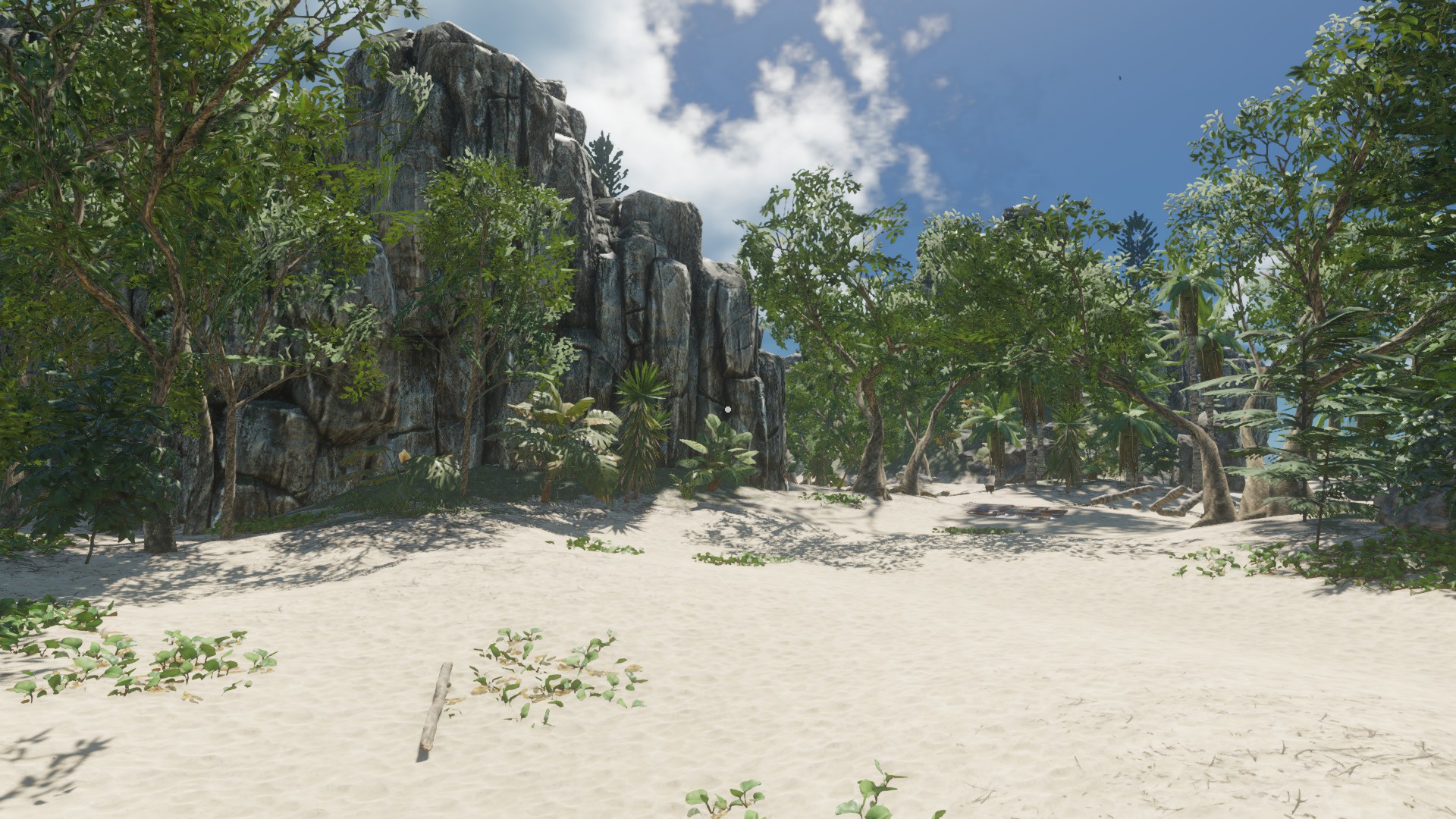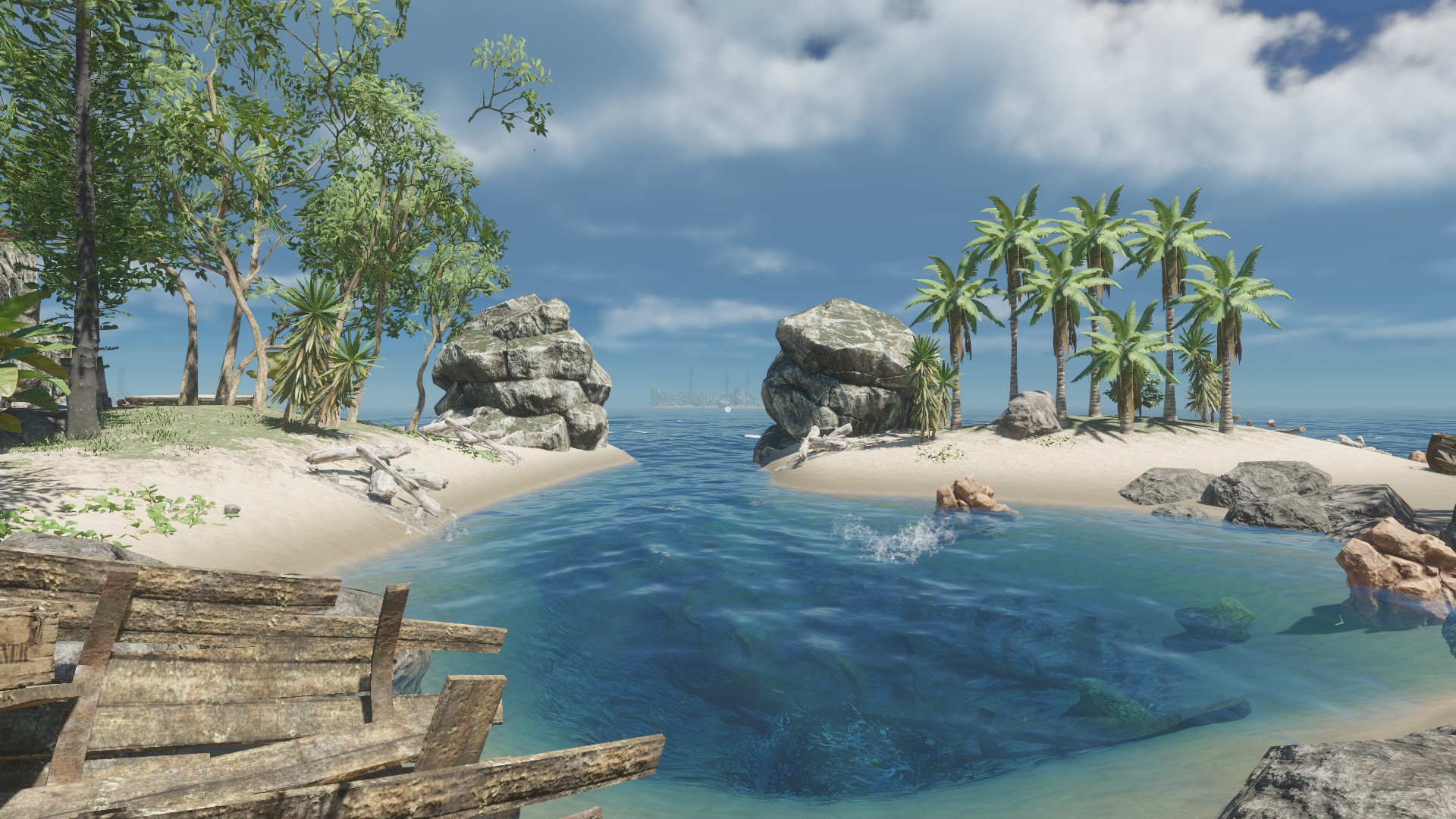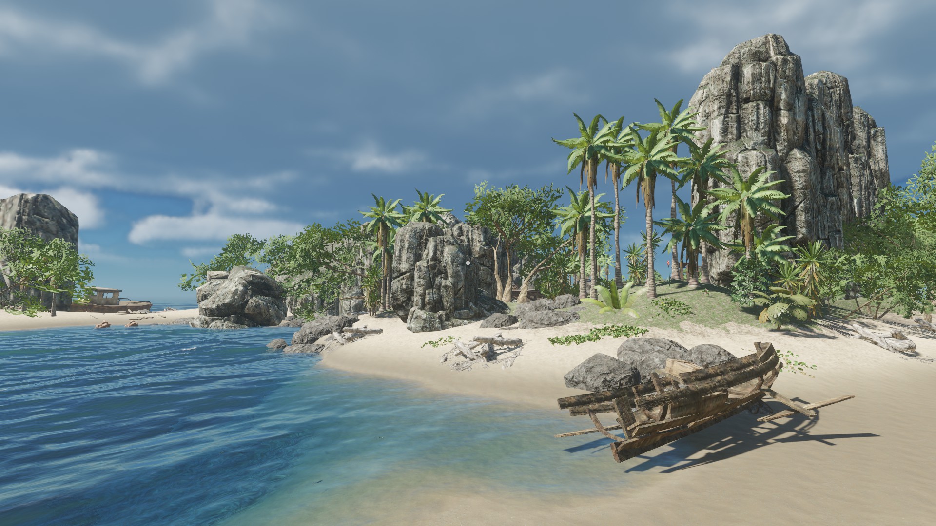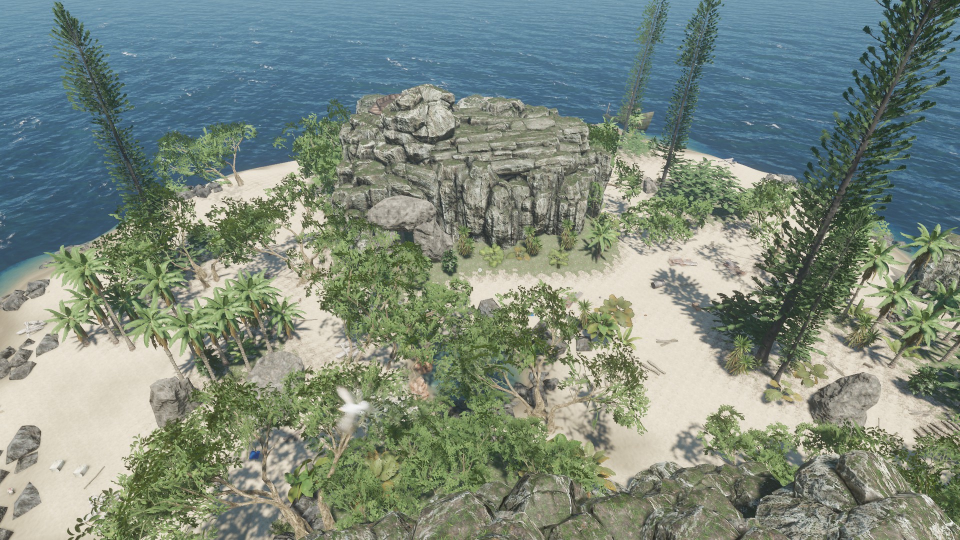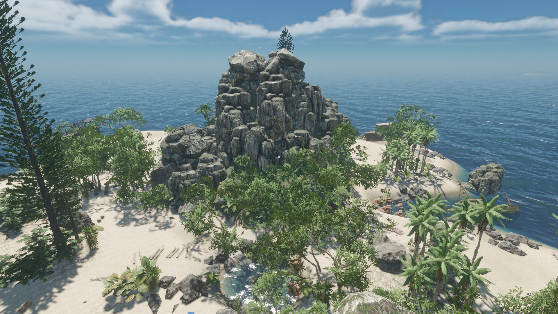 Das Schiffswrack was ihr auf dem Bild seht, ist eine Insel so zu sagen - ich fand diese statische Aufteilung der Inseln ziemlich öde - auch das jede Insel "viele" Rohstoffe hat und gut zum wohnen ist. In meiner Inselwelt ist es etwas schwieriger und es kann passieren, dass man auf eine Insel kommt und außer einer Krabbe und 3 Palmen nichts vorfindet - zumindest über Wasser ;)