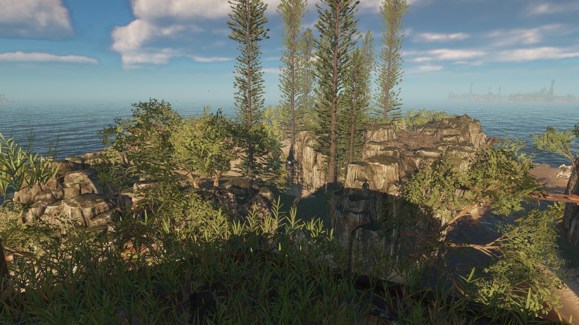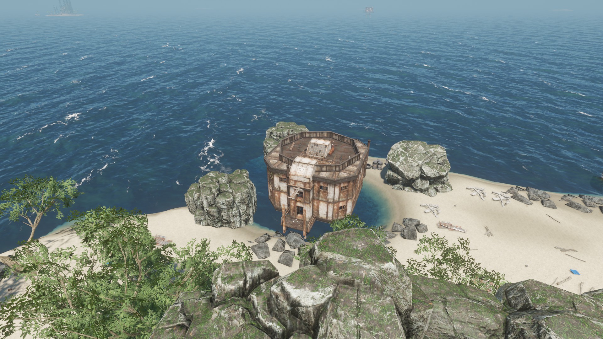 Viele Haie und sehr schöne Plätze um friedlich zu bauen und zu fischen.