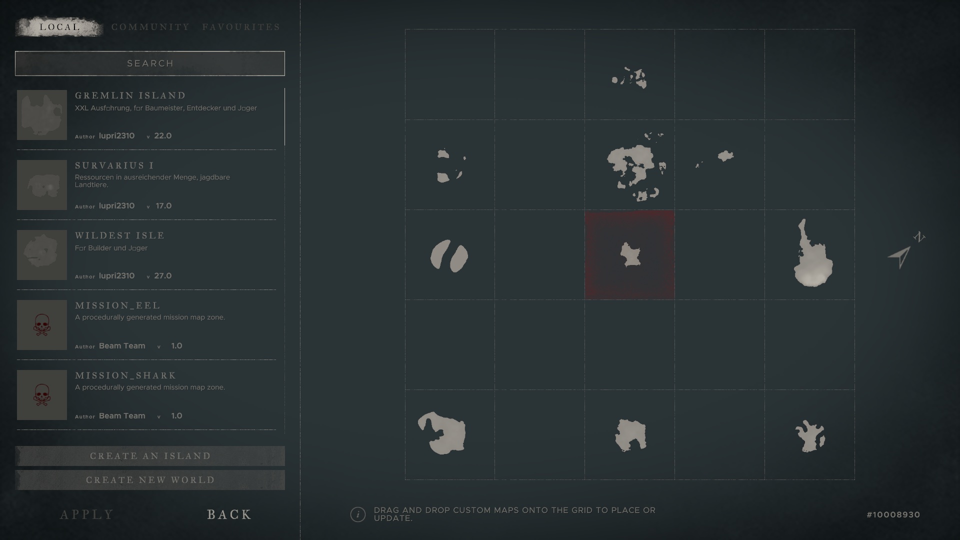 Nein, @Max_BerlinGo, Du musst im Grunde keine neue Inselwelt erstellen. Sollte die ältere Version der Insel schon auf der Karte sein, die Du durch die neue Version ersetzen willst, dann musst Du diese leider löschen, mit Apply speichern, dann die neuere Insel einsetzen.