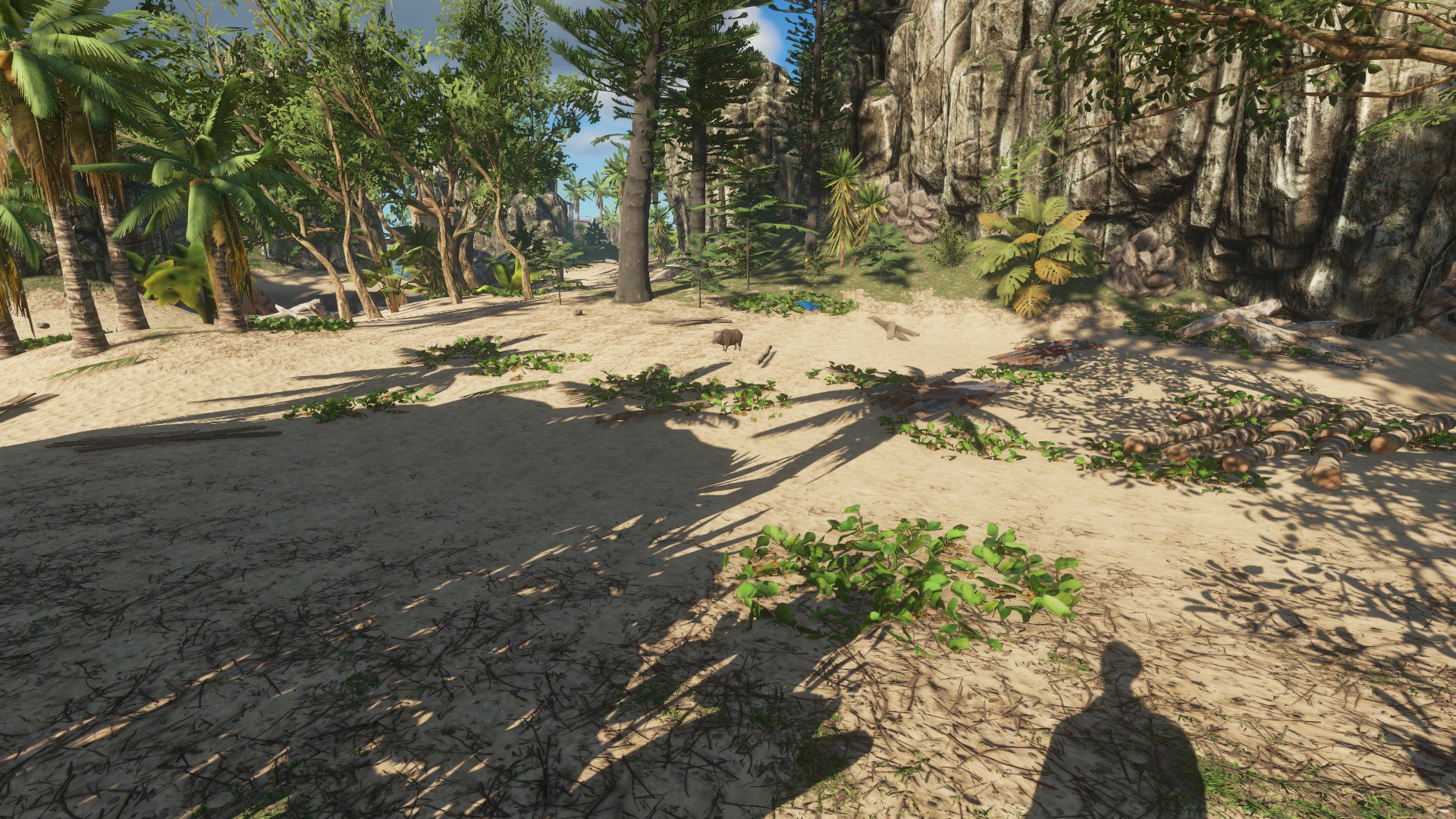 BESCHREIBUNG: Viele Ressourcen zum Bauen, Krabben, Schlangen und Wildschweinchen