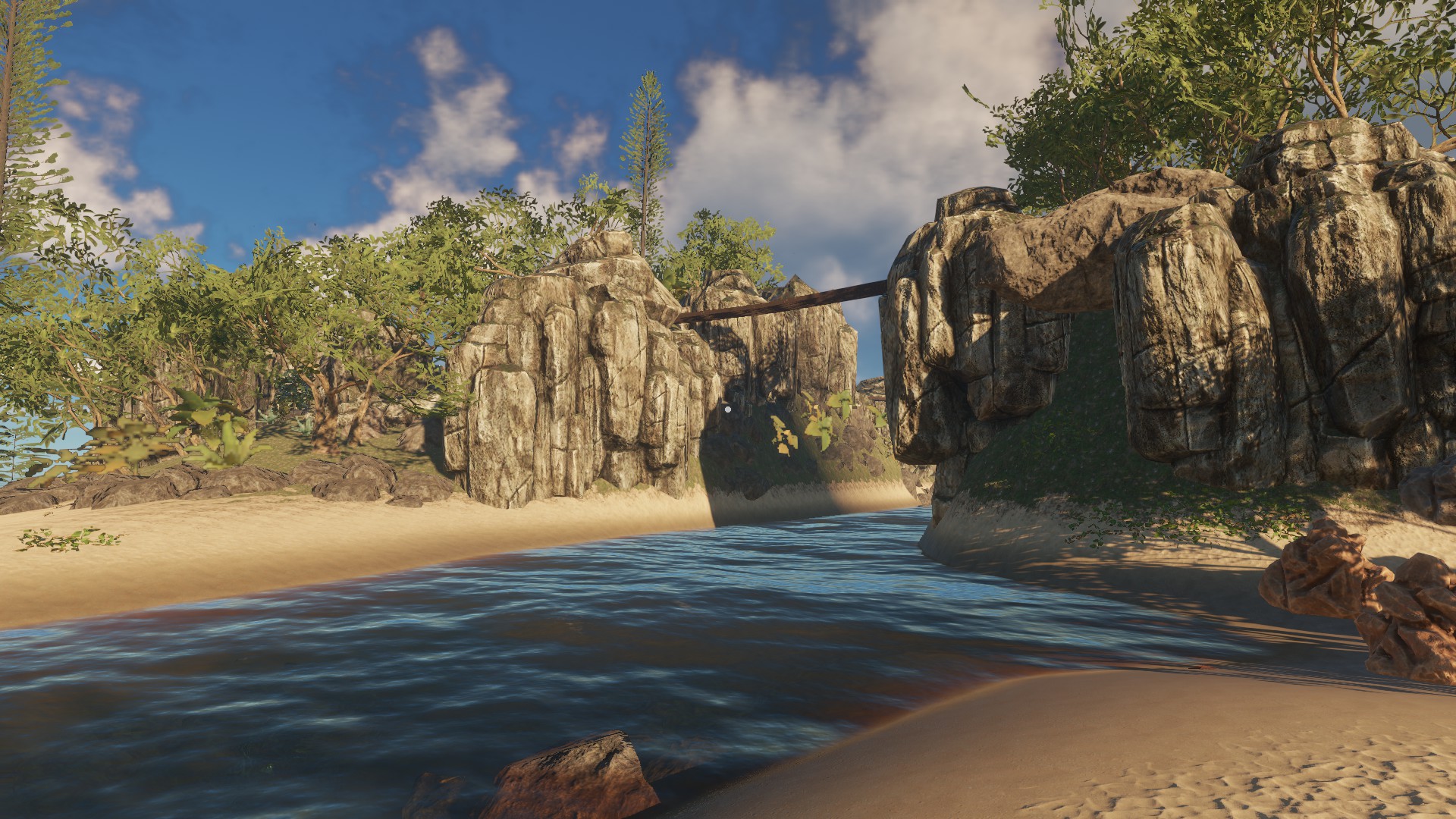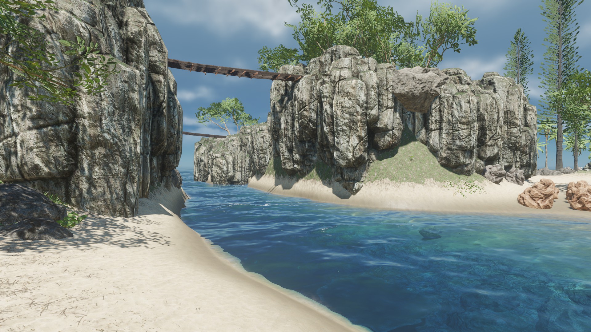 Brücken und Höhlen zum Entdecken, genug Inselspaß für geraume Zeit.