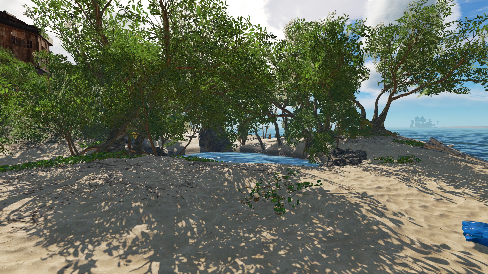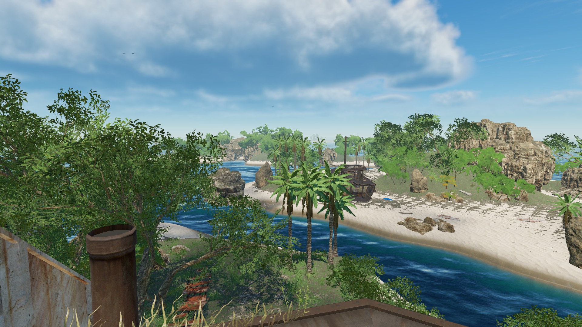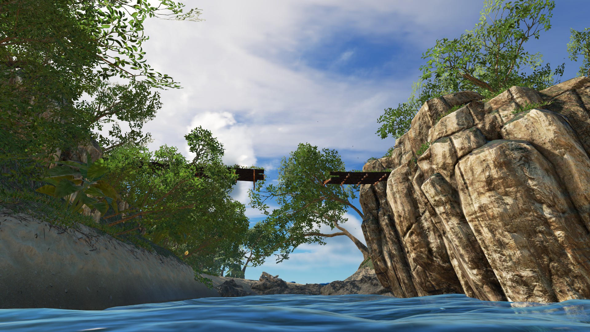 3. Habe ich eine Art Trainingscamp gebaut. Broken Bridges wie sie auf den Seaforts vorkommen, sowie Wracks an Land um das mit den gelben Haltestangen zu üben.