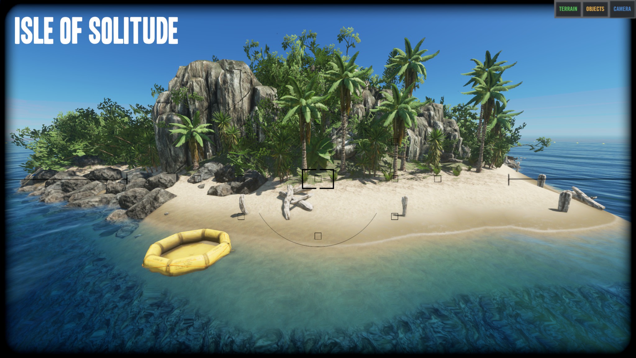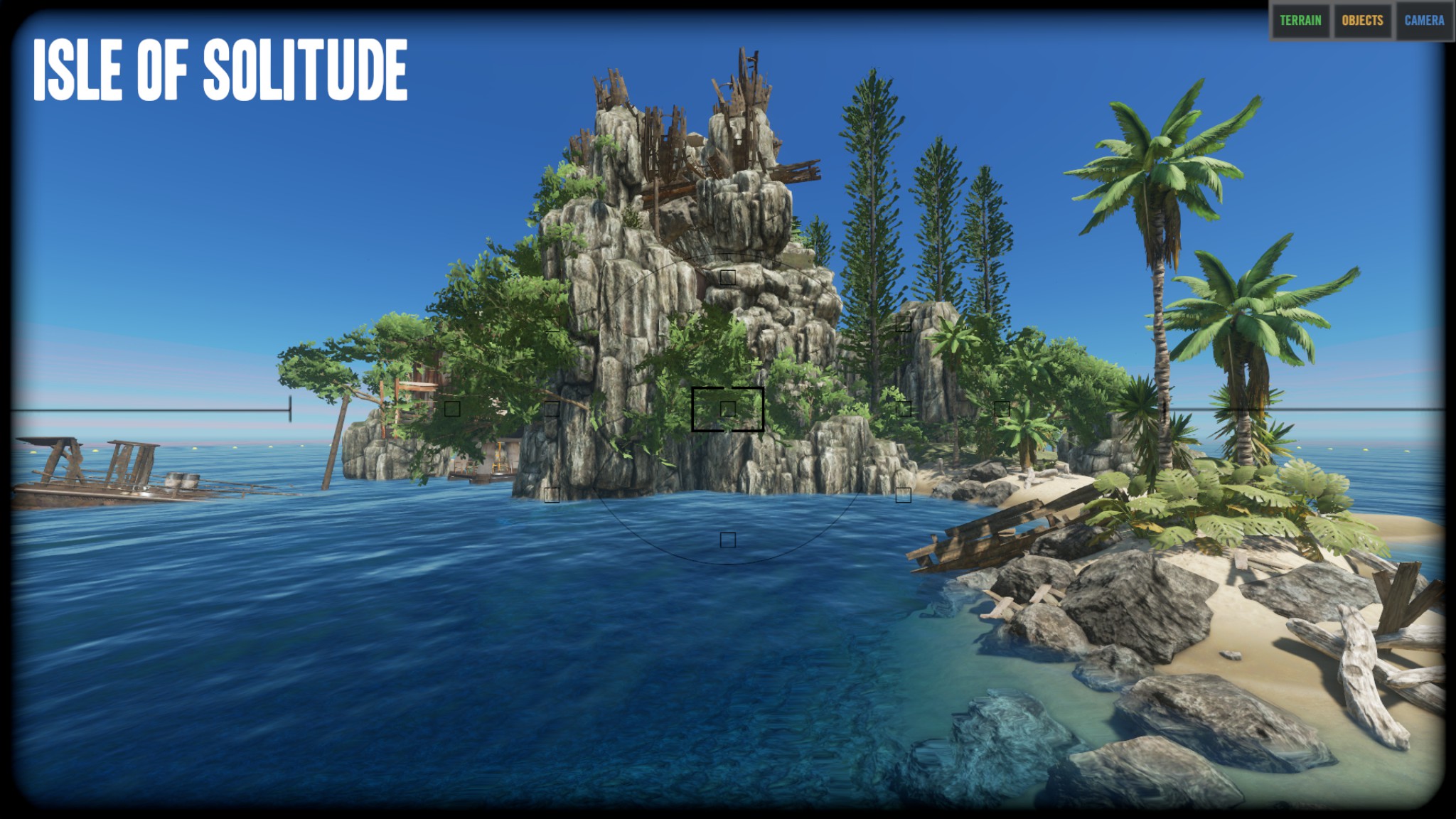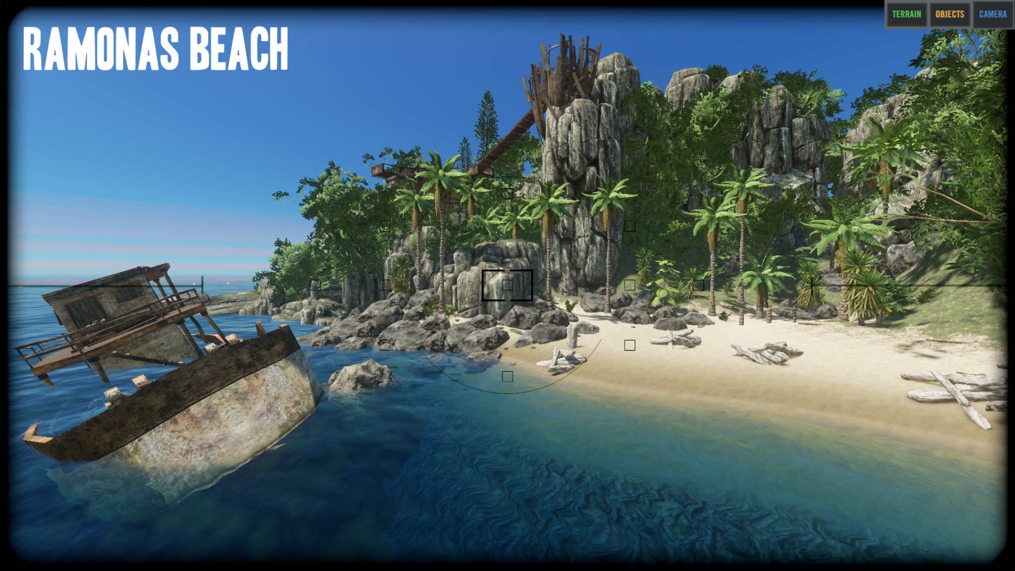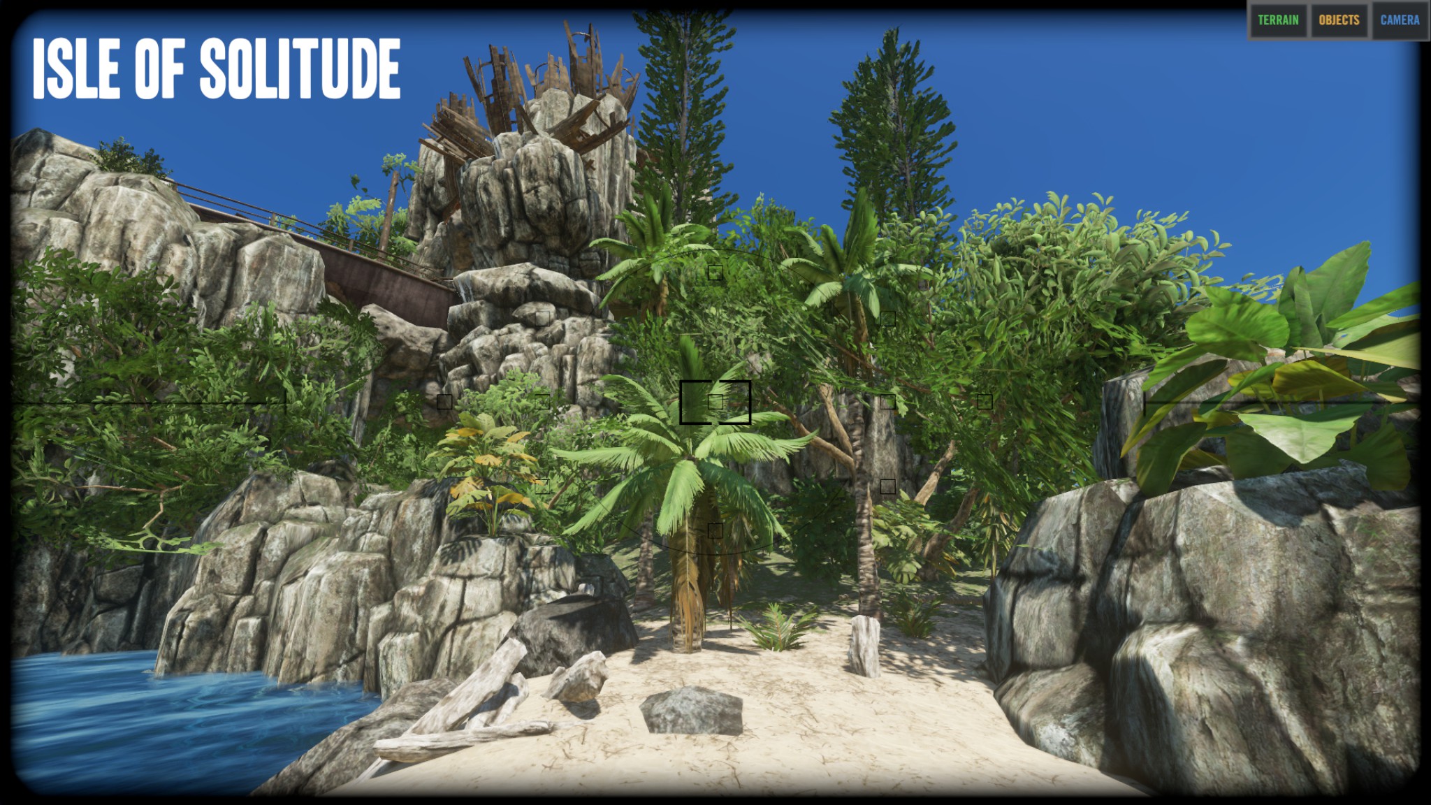 "I think the island is really nice the way it is and did not remove any of the vegitation or rock/cliffs. The only things that I removed were the logs, palm fronds, rocks, sticks, and scraps. I did put a few back on the island as start resources, but players can get more from the vegitation and mining stuff." Zitat Ende