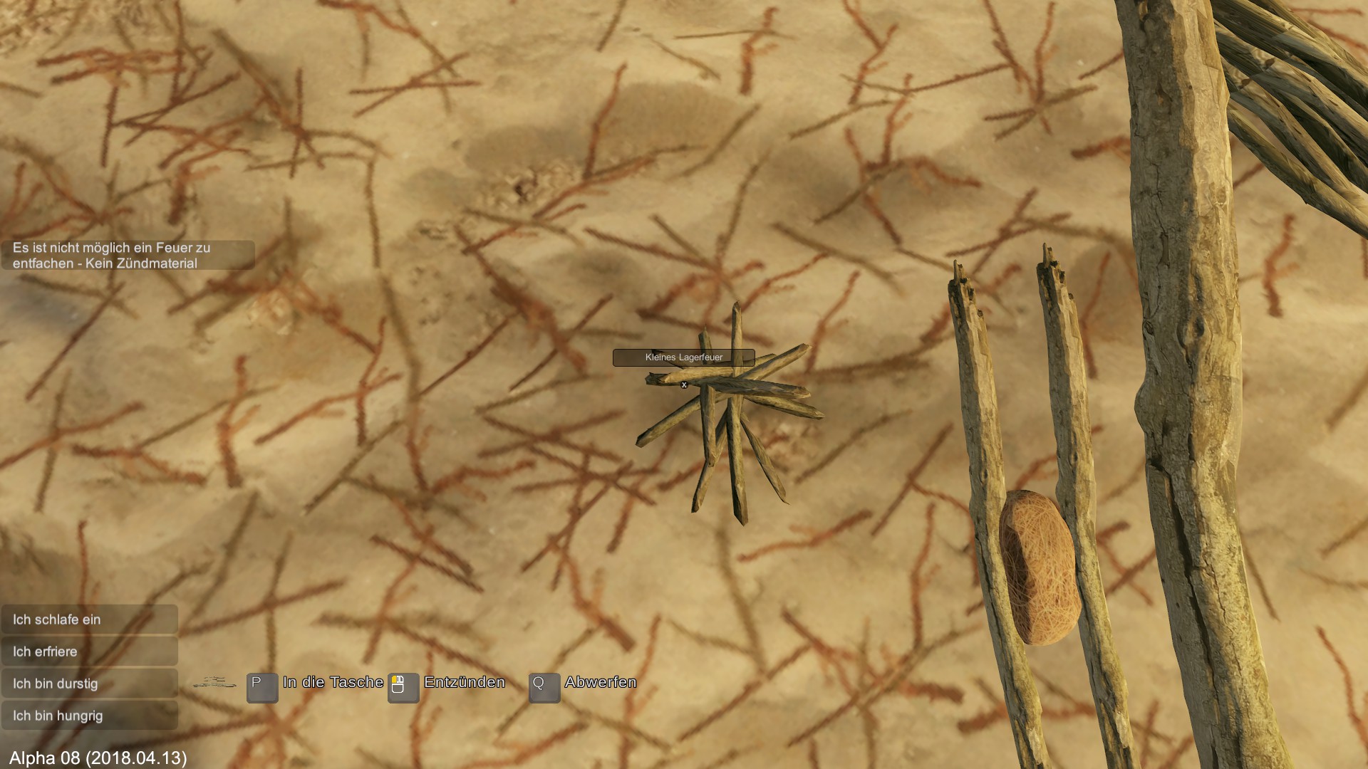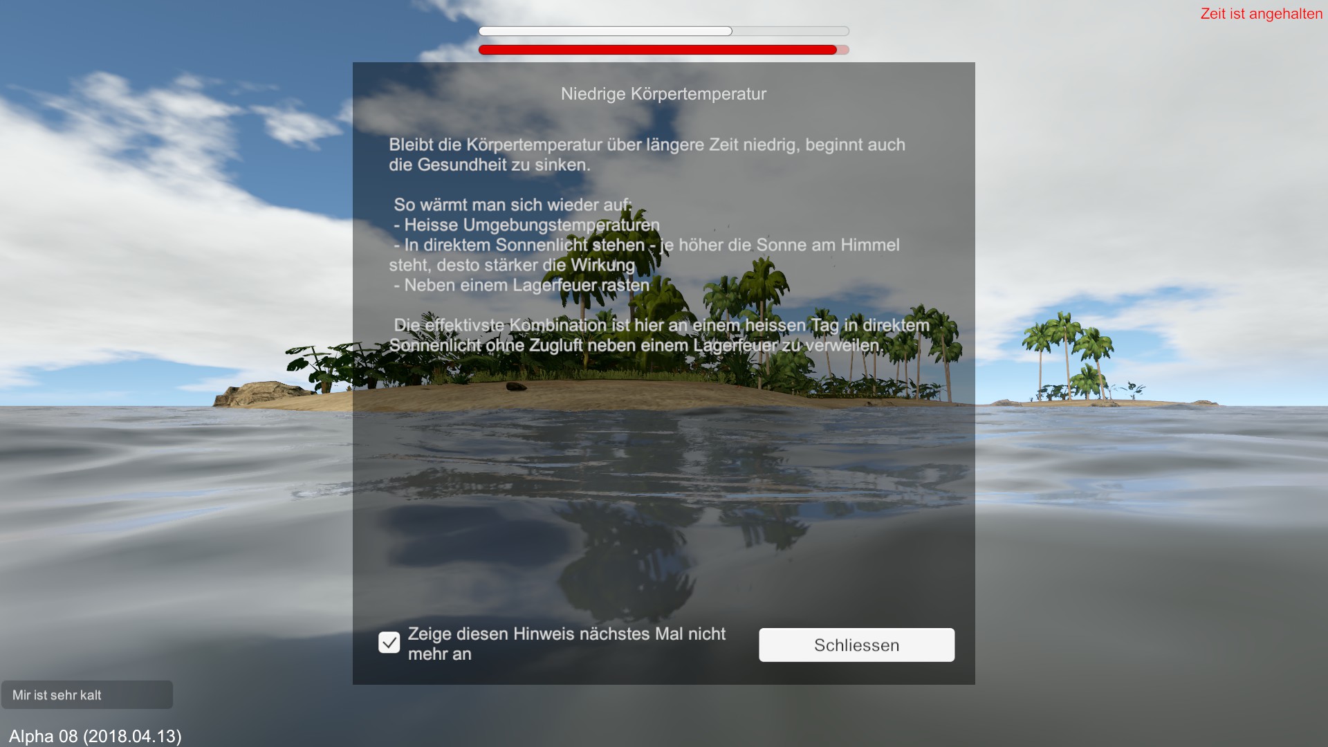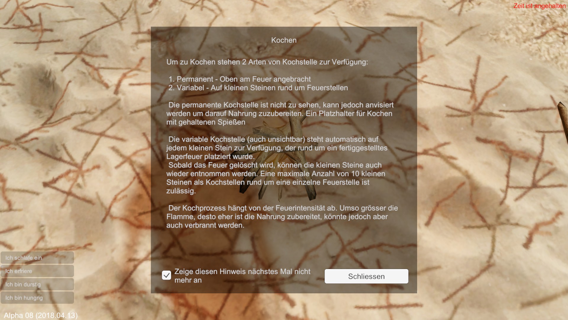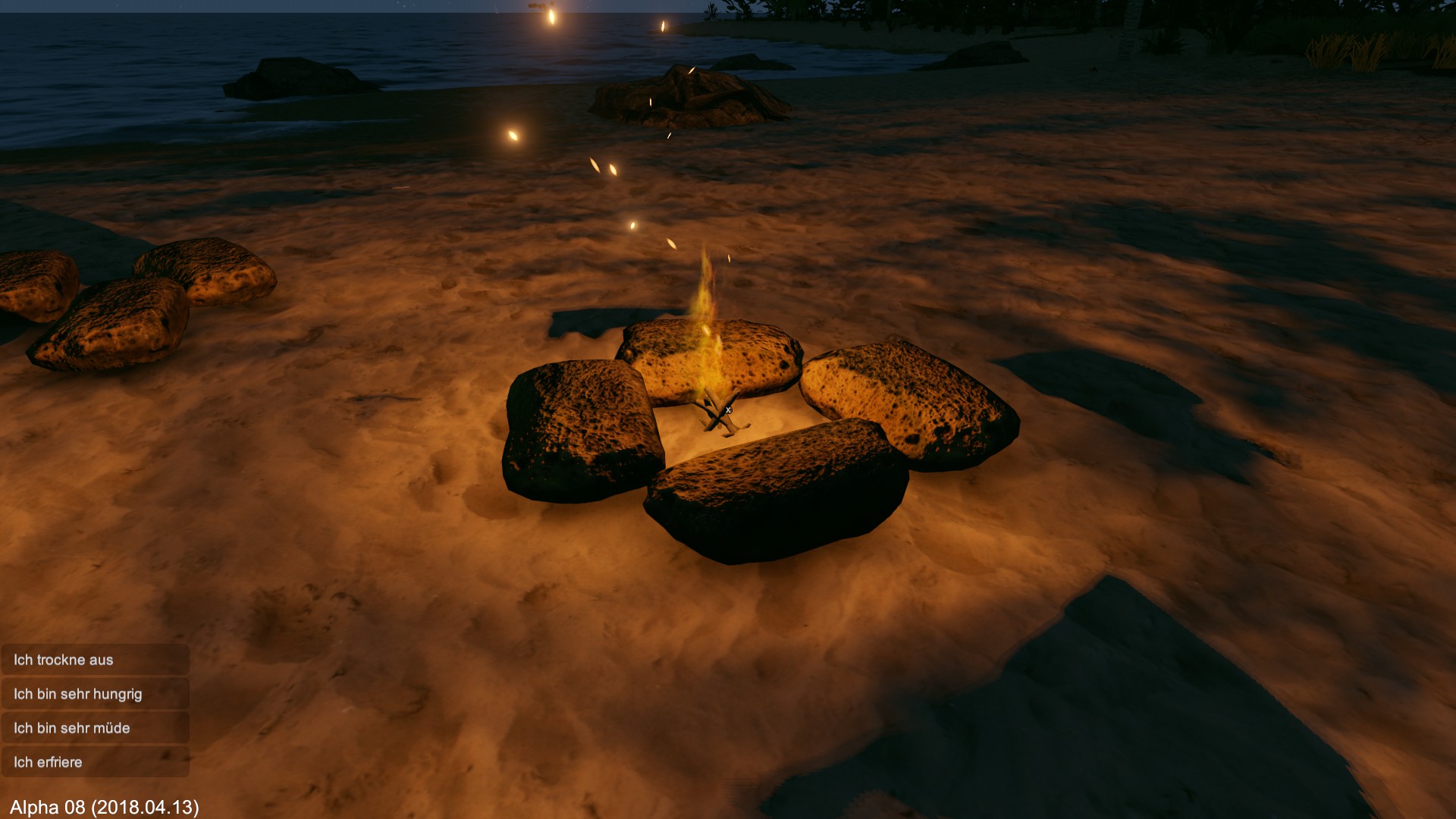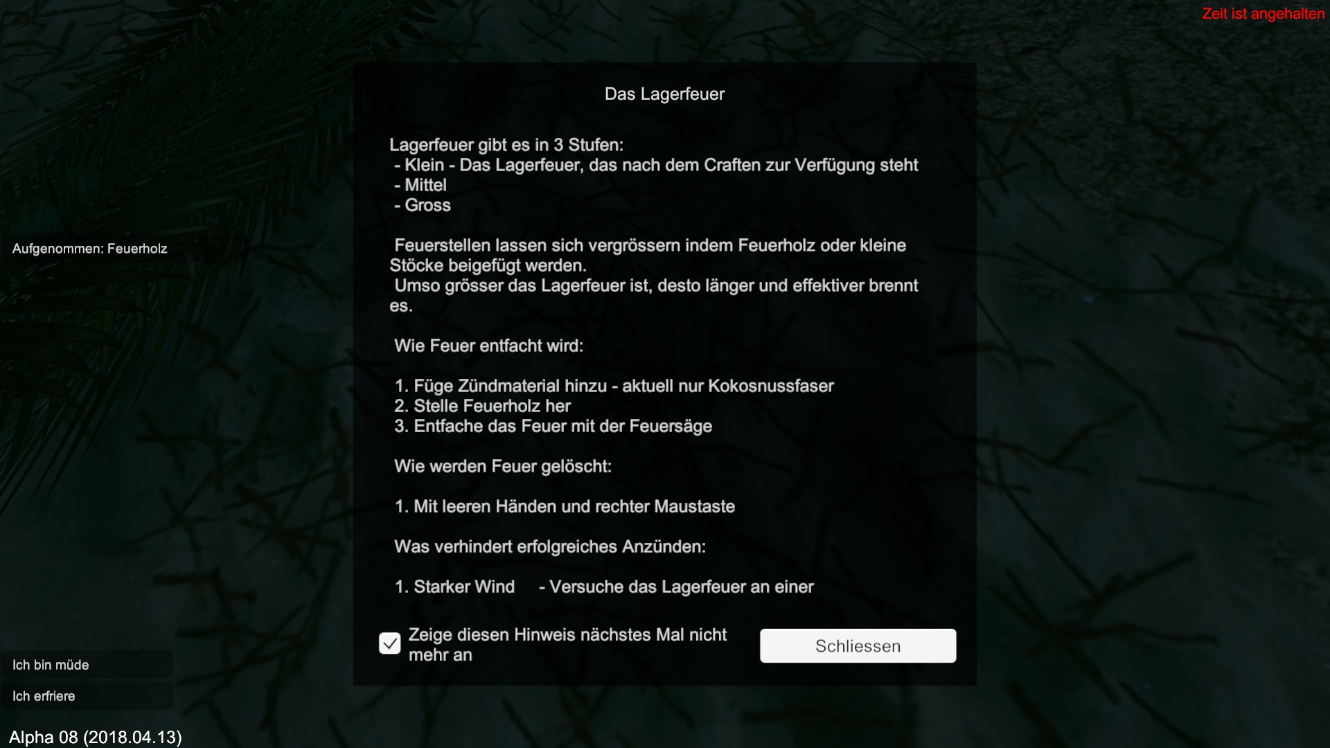 Ein Lagerfeuer hilft und nach einer Weile verschwindet der Hinweis.