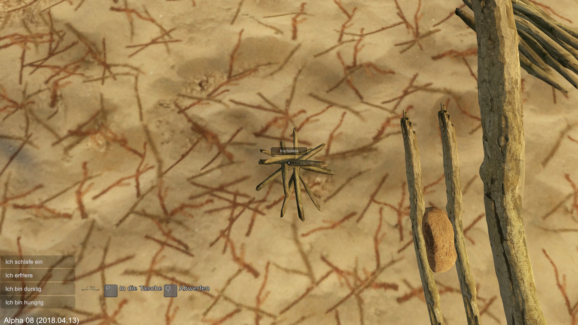Wie in der Realität auch holt sich der Körper was er braucht. Ich ziehe einen großen Naturstein zum Lagerplatz.