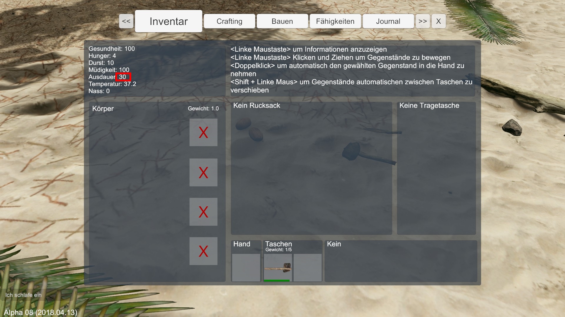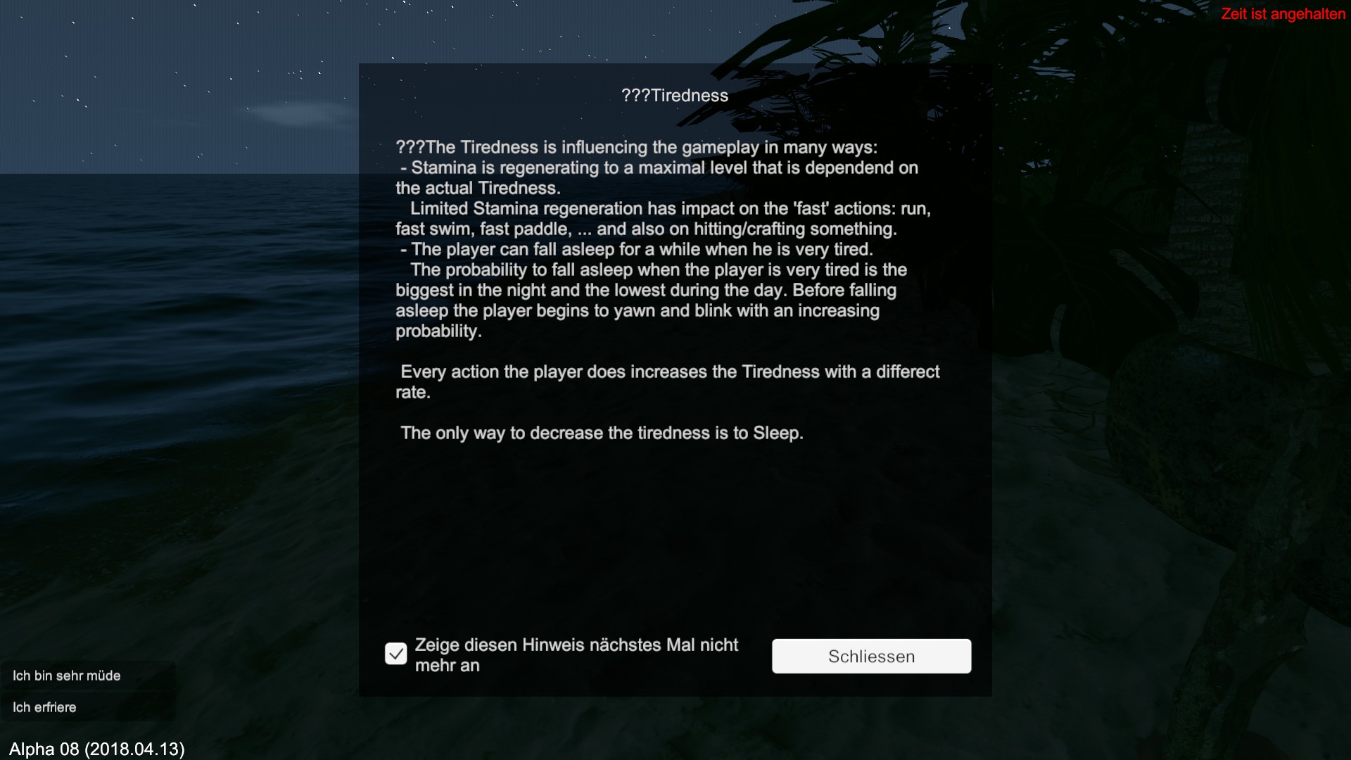 Ich habe der Spielfigur keine Möglichkeit zum Schlafen gegeben, habe sie stattdessen arbeiten lassen.