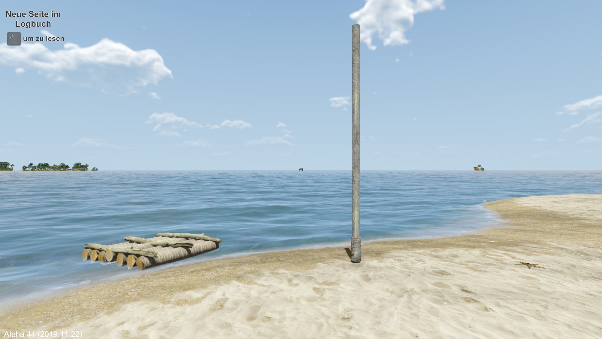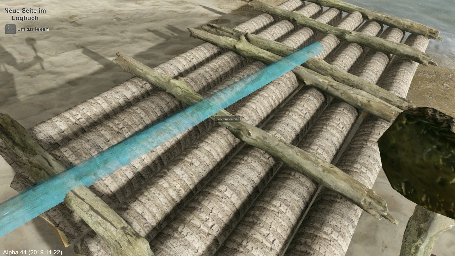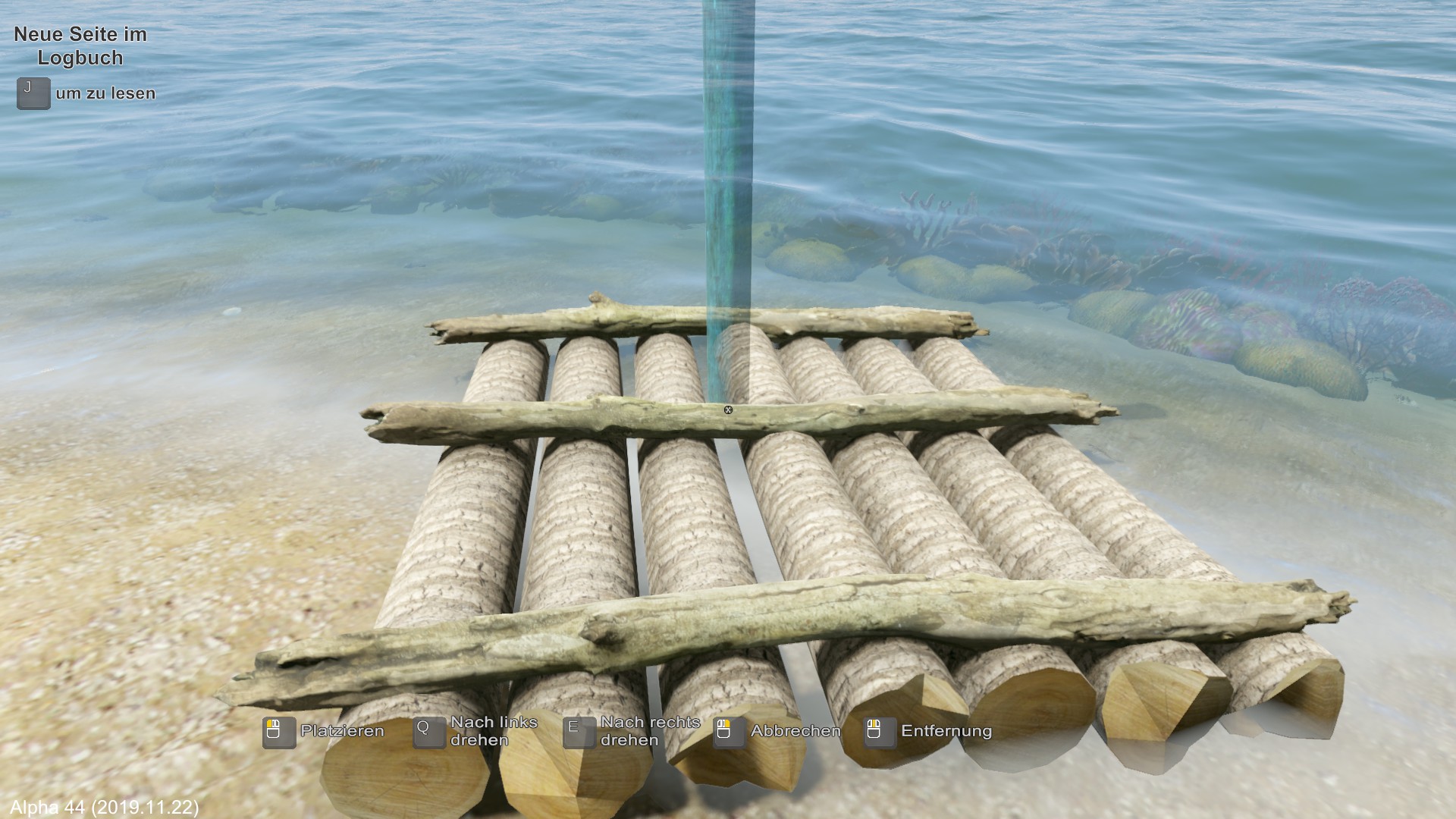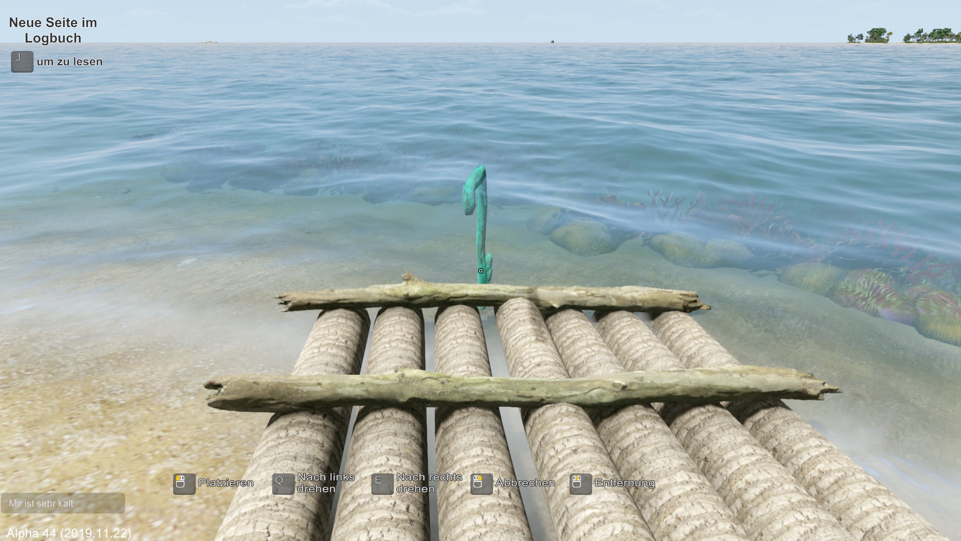 Am nächsten Morgen fälle ich eine der wenigen Palmen und erhalte damit vorerst Flüssigkeit mit den Kokosnüssen. Das Holz wird zum Hüttenbau verwendet.