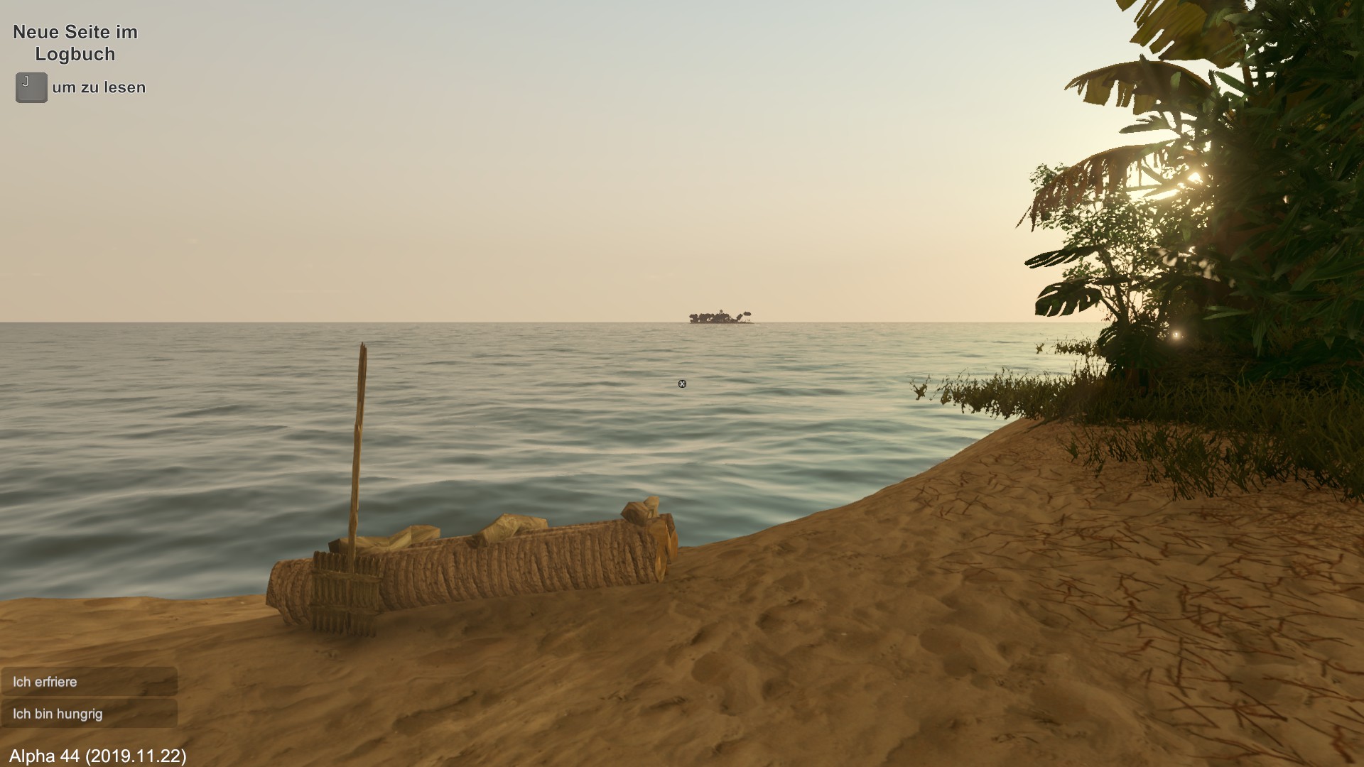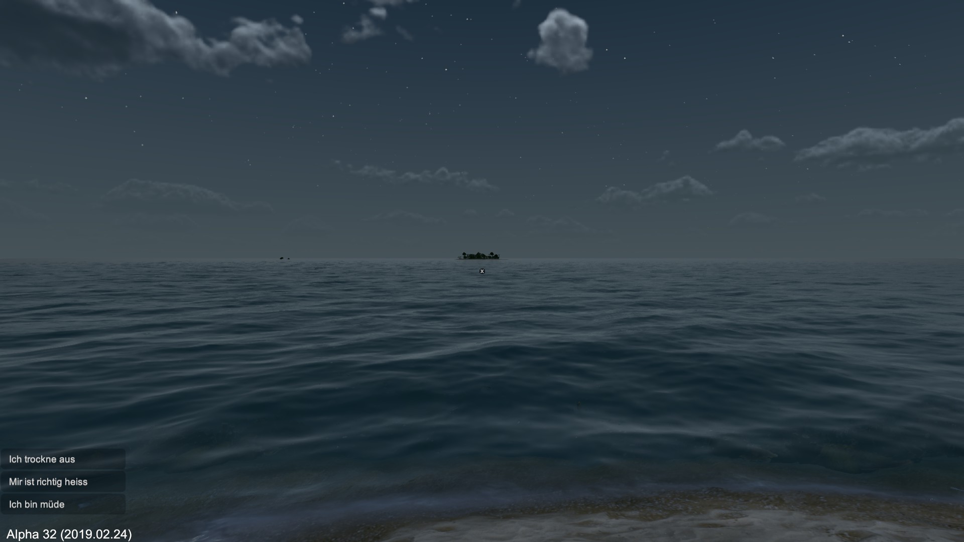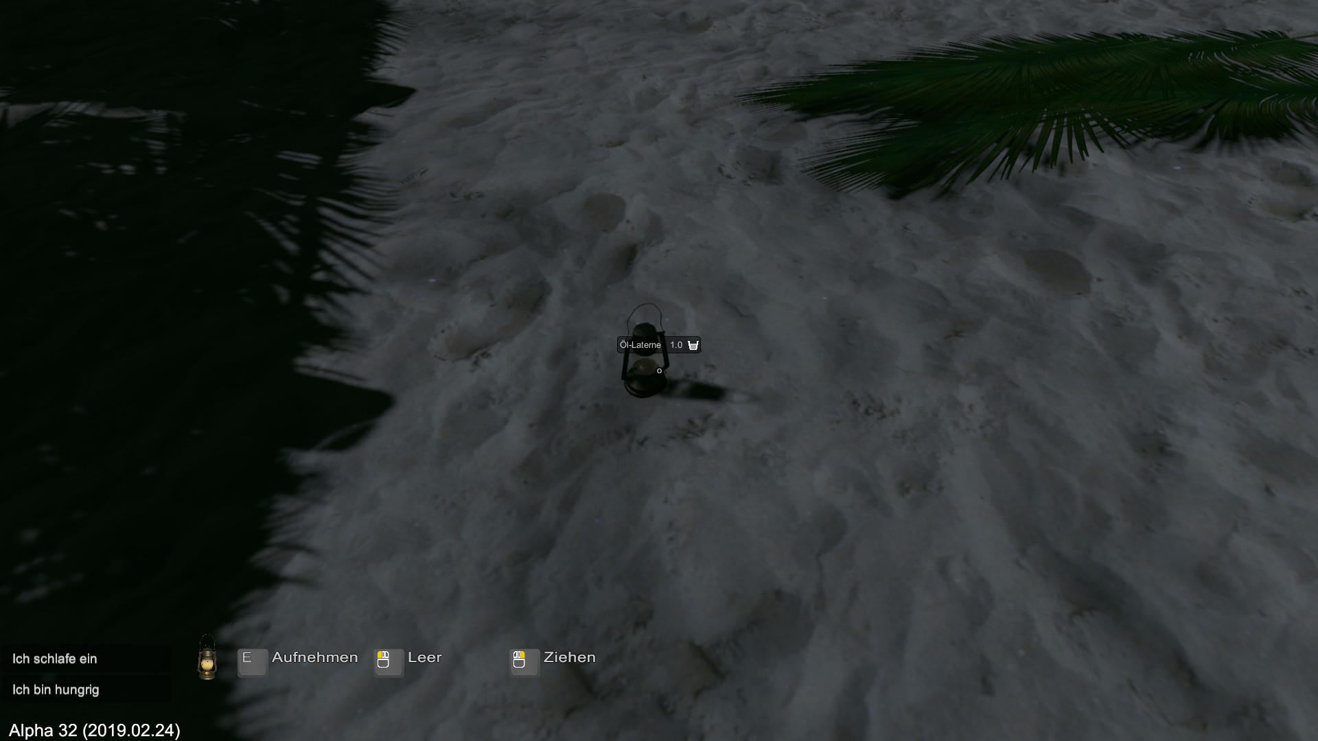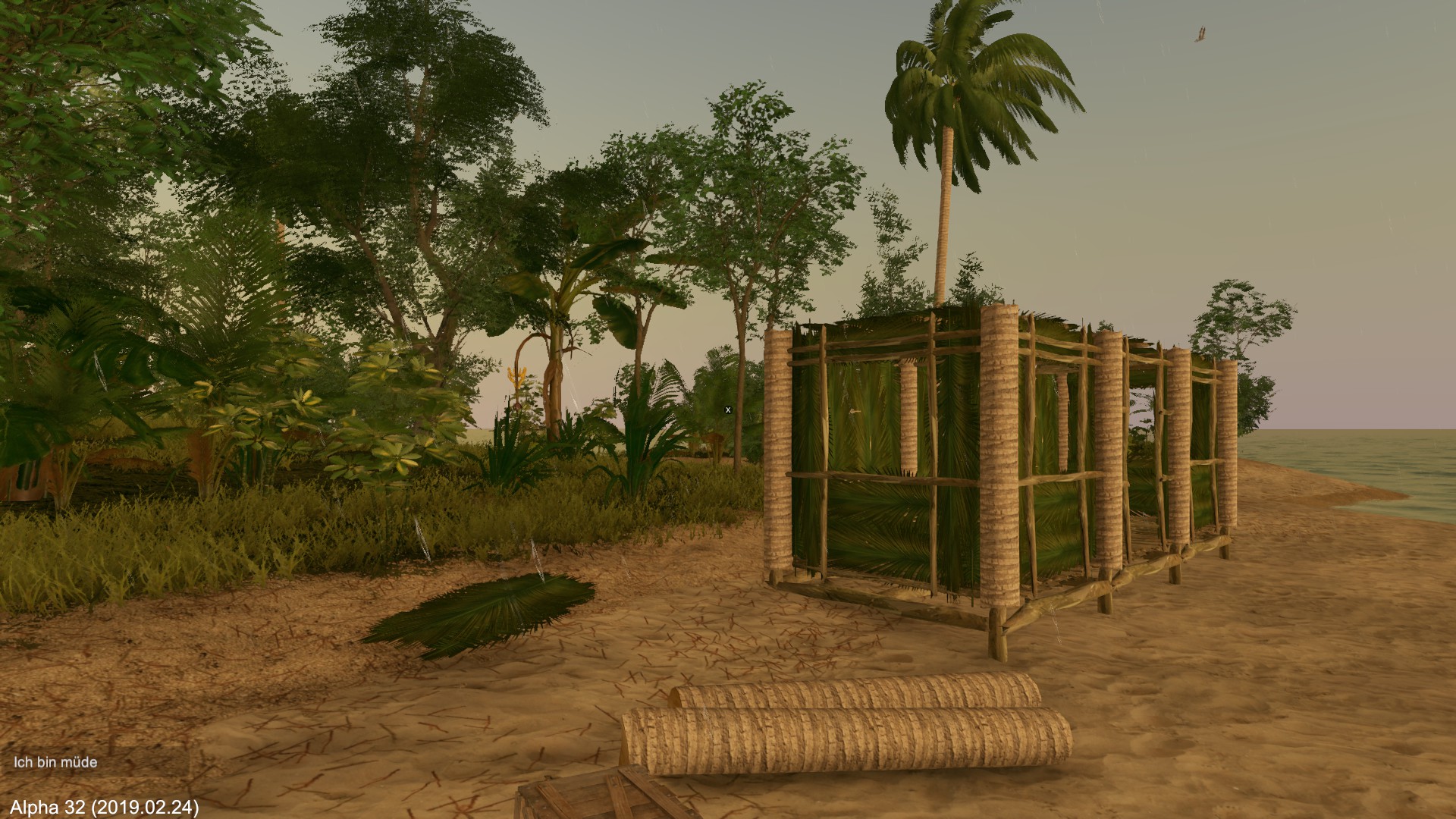 Wenn es nicht bald regnet, muss ich mich fragen, ob die Spielfigur langfristig überlebt. Ich entscheide mich erst mal zu schlafen.