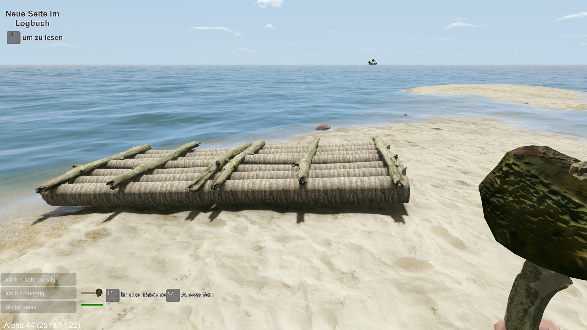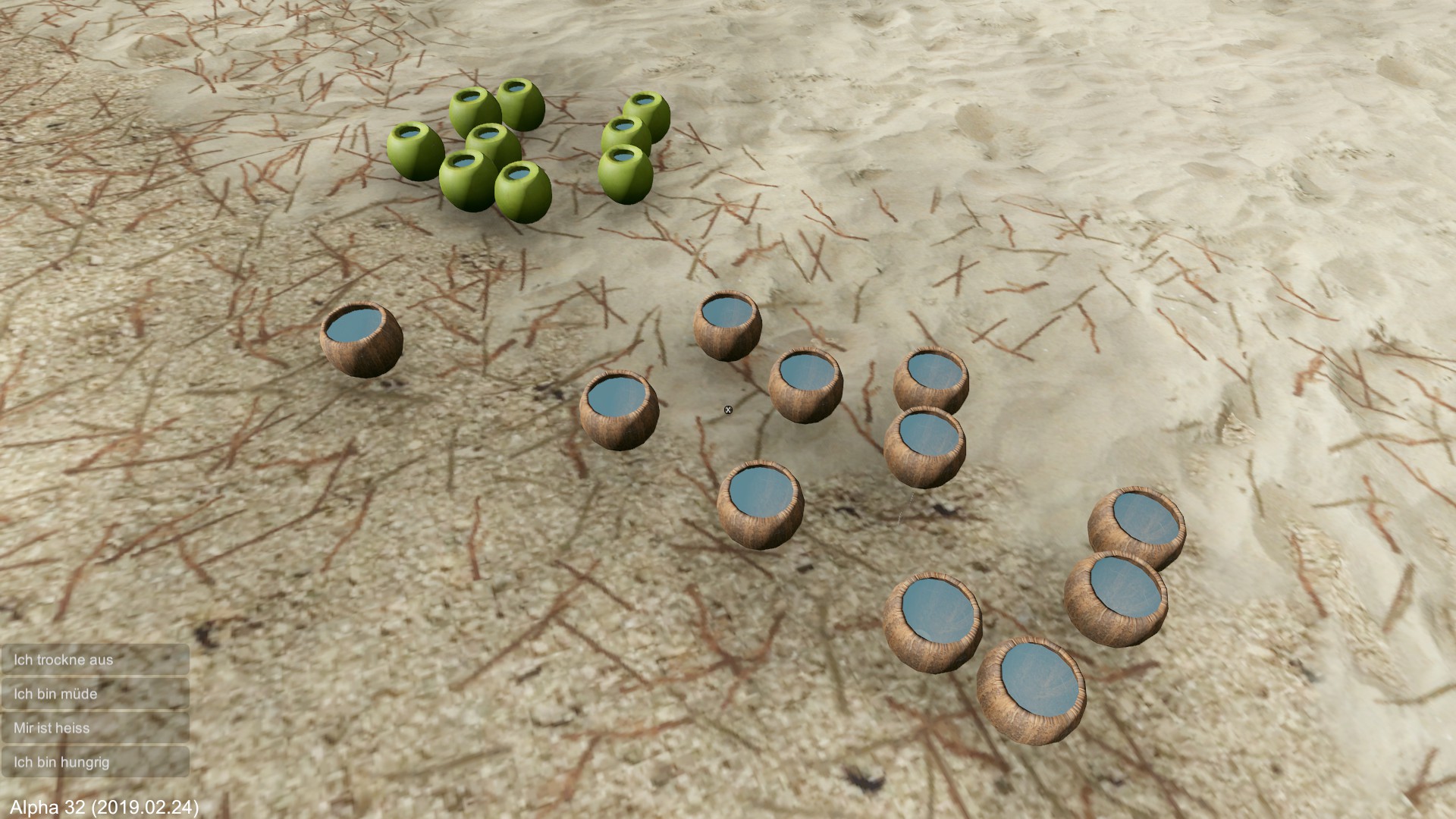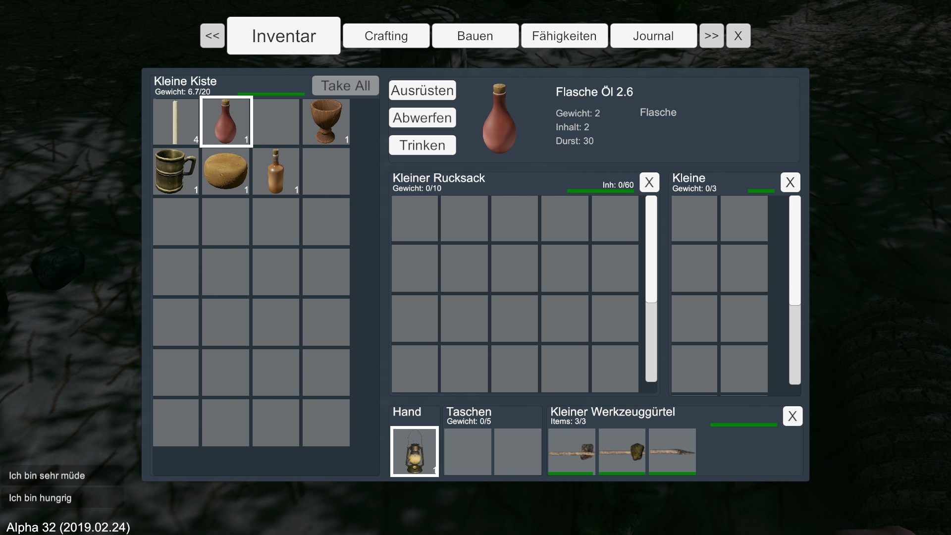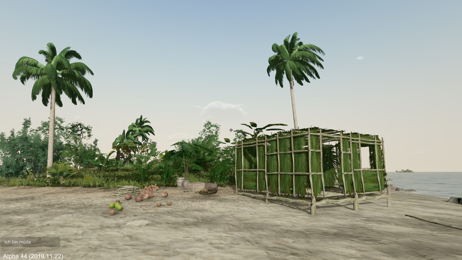 Wenn es nicht bald regnet, muss ich mich fragen, ob die Spielfigur langfristig überlebt. Ich entscheide mich erst mal zu schlafen.