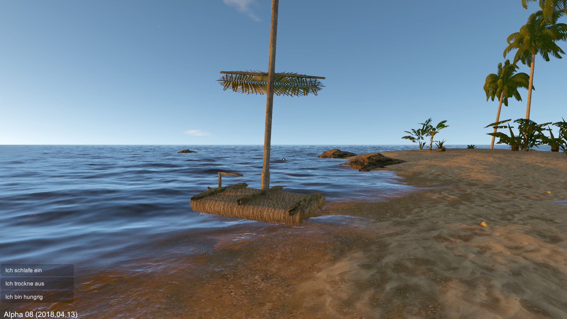 Von Anfang an... Neues Spiel eröffnet, Floß gebaut und die Fahrt zur gegenüberliegenden Insel gestartet.