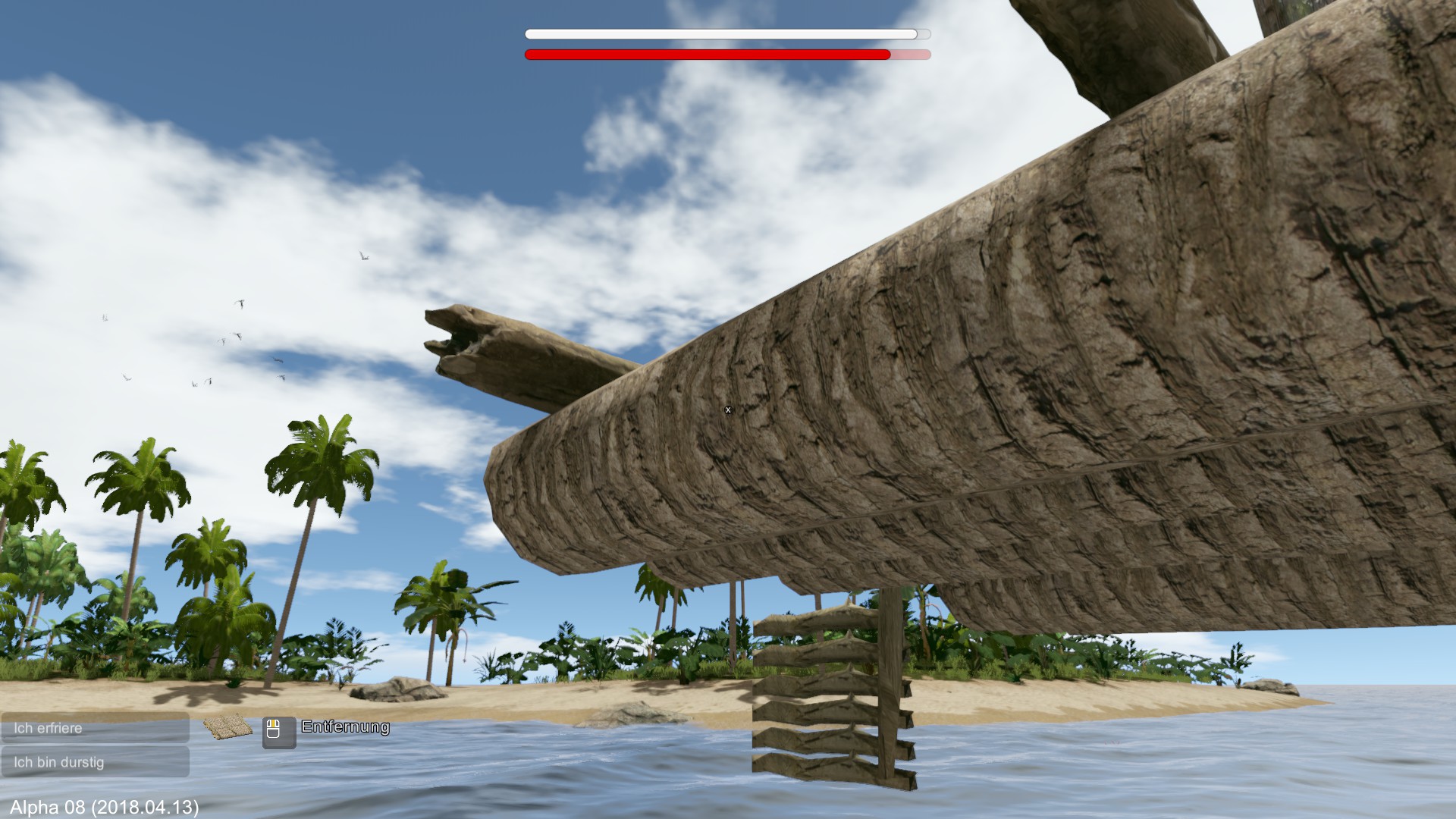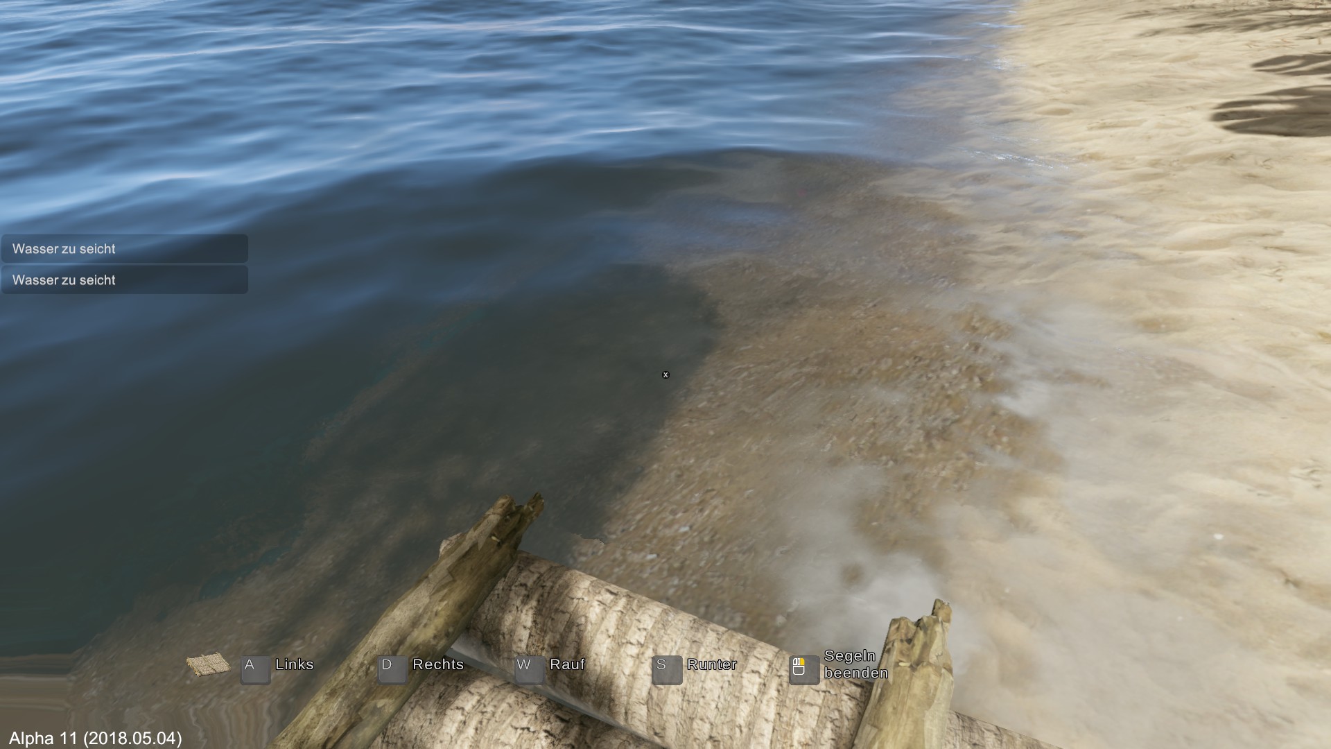 Das Floß ist im tieferen Wasser, ansonsten bekomme ich die Meldung vom seichten Gewässer.