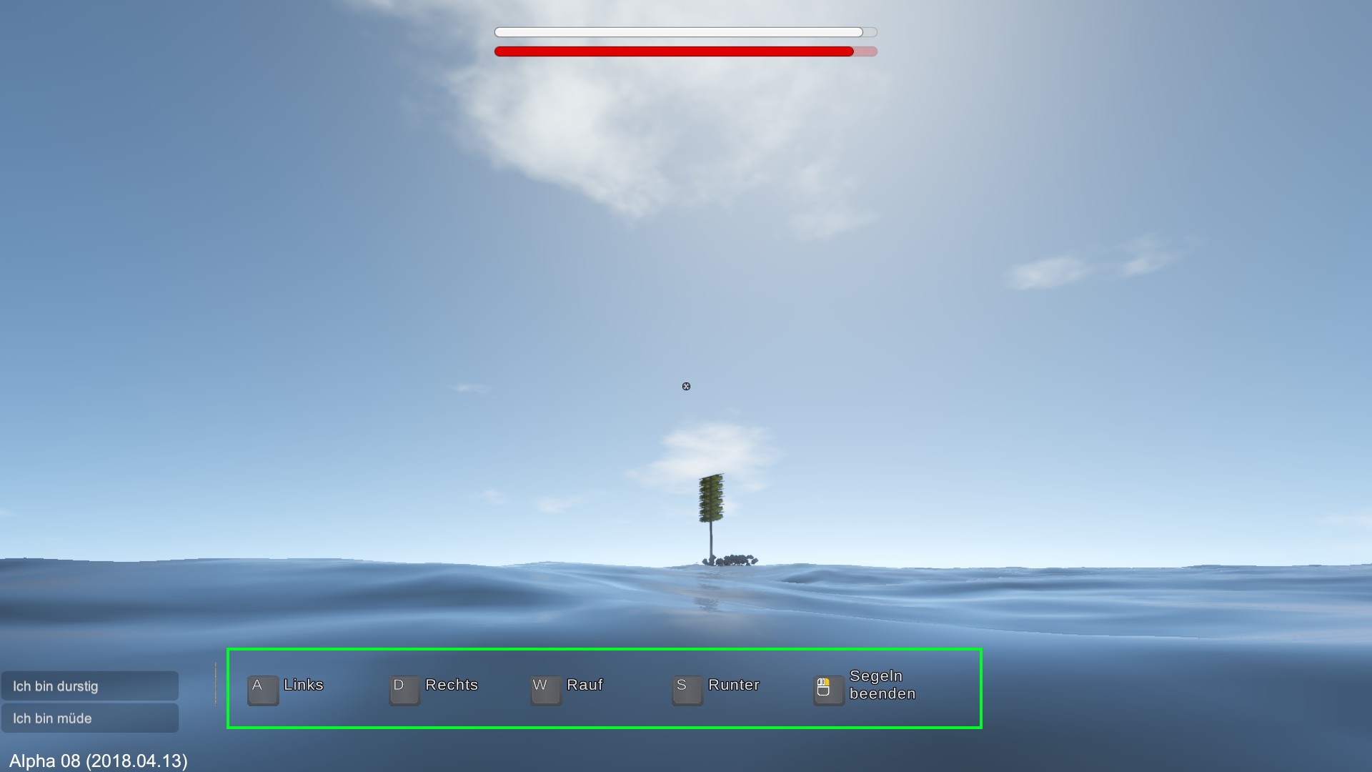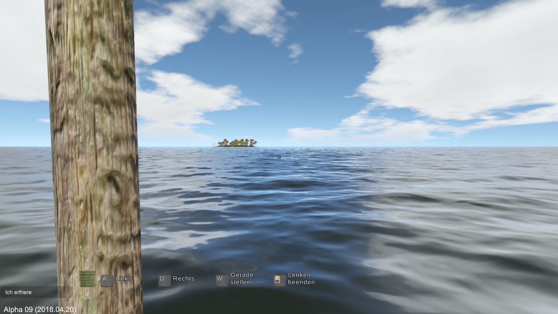 Habe die Bewegungstasten gedrückt und die Maus bewegt. Einmal konnte ich das Floß quasi auch als U-Boot nutzen.