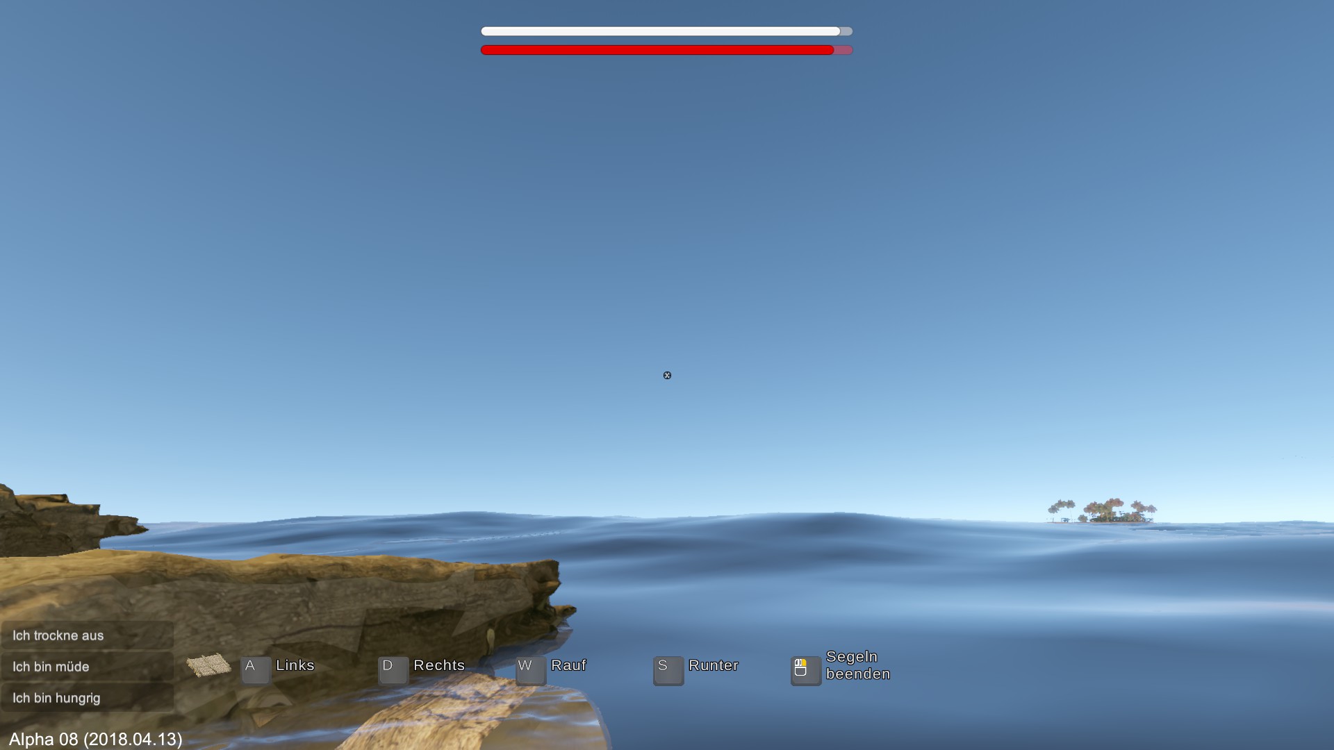 Ich bin nun einige Male gestartet und wollte zur anderen Insel schippern. Leider klappt das nicht.
