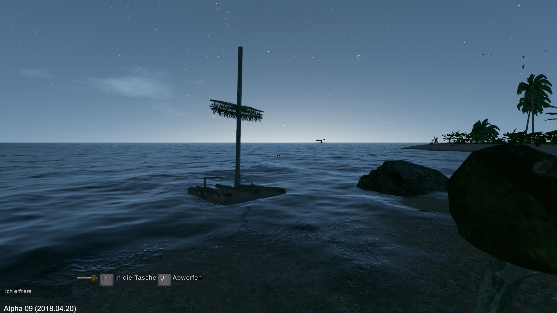 Meine Versuche wieder auf das Floß zu kommen scheitern und die Spielfigur ertrinkt. Gespeichert habe ich auf der Ausgangsinsel…