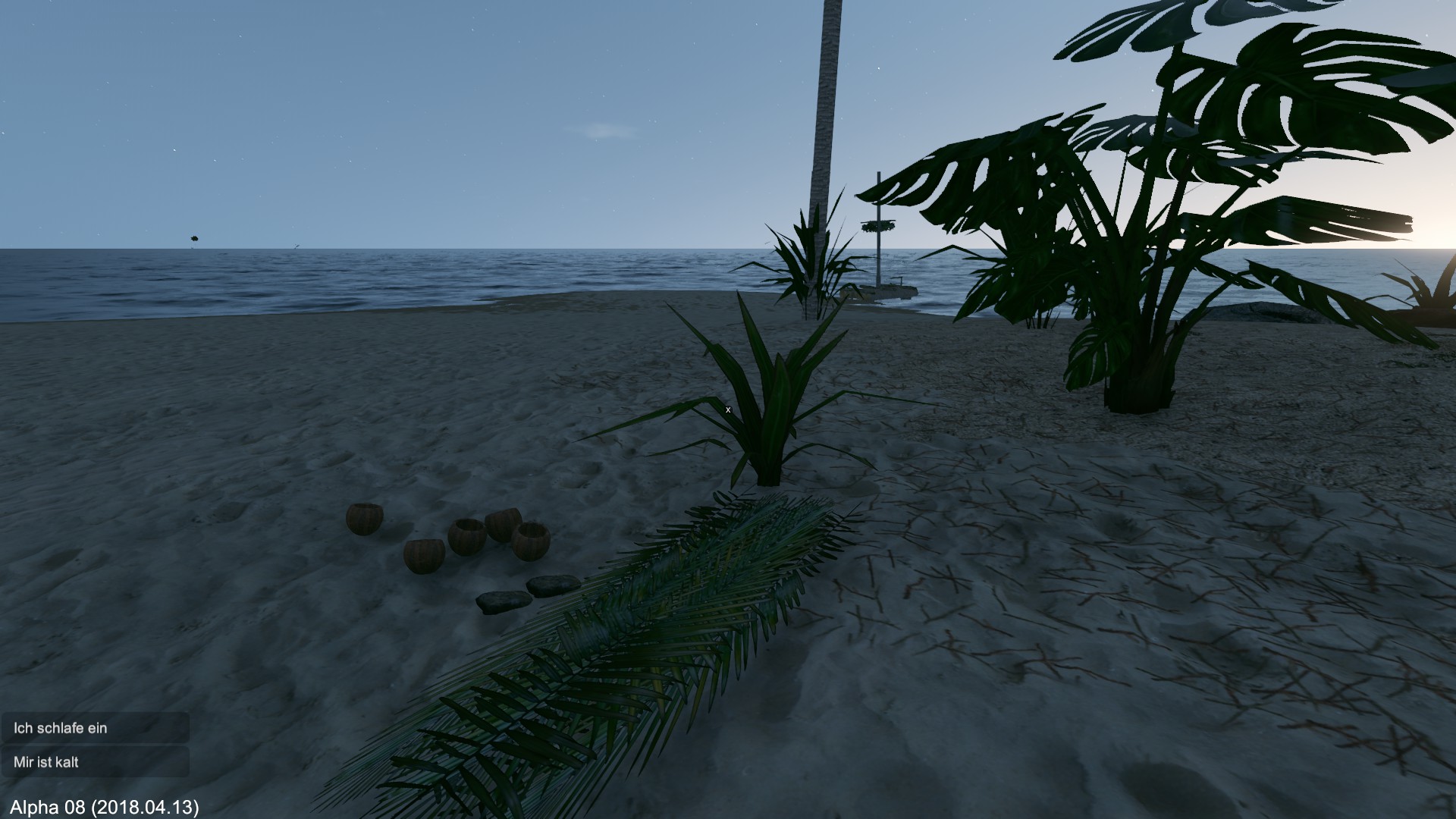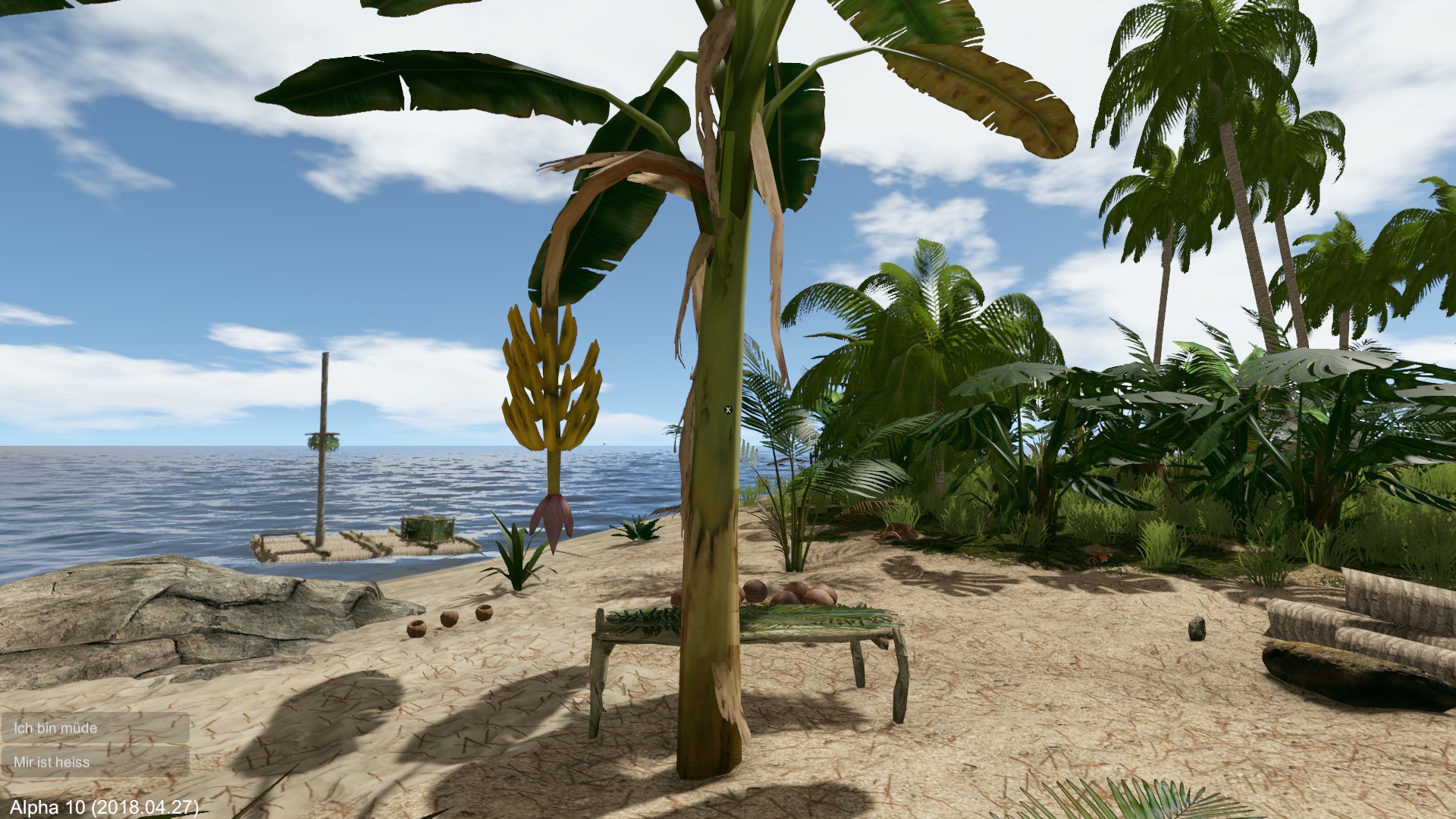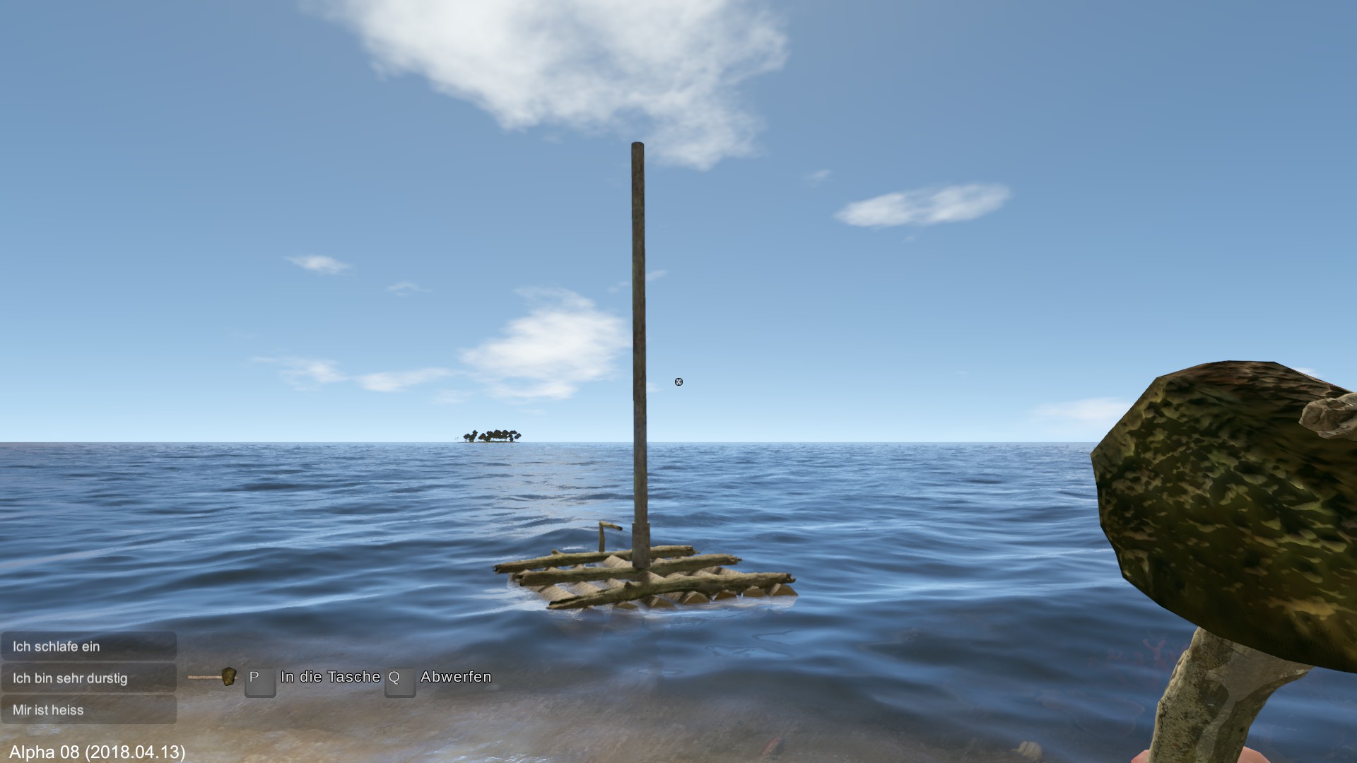 Von Anfang an... Neues Spiel eröffnet, Floß gebaut und die Fahrt zur gegenüberliegenden Insel gestartet.