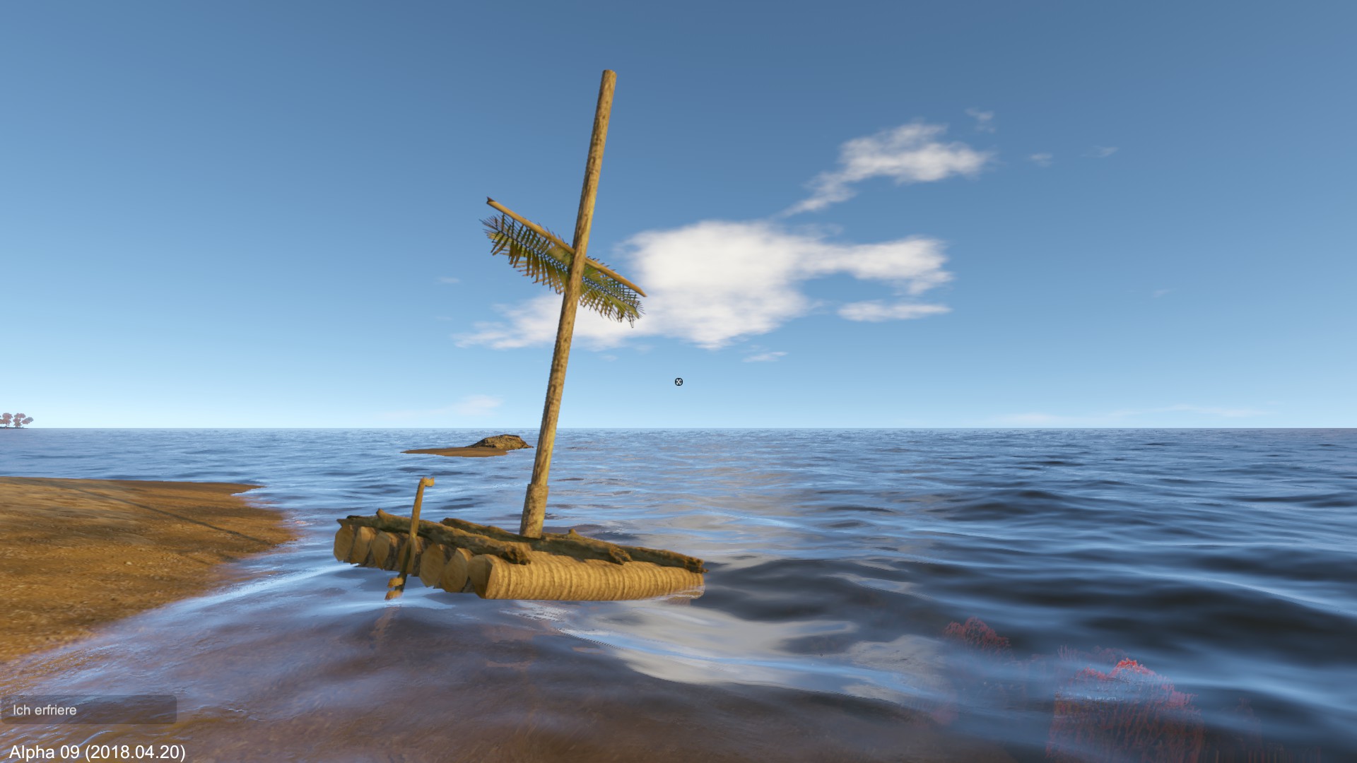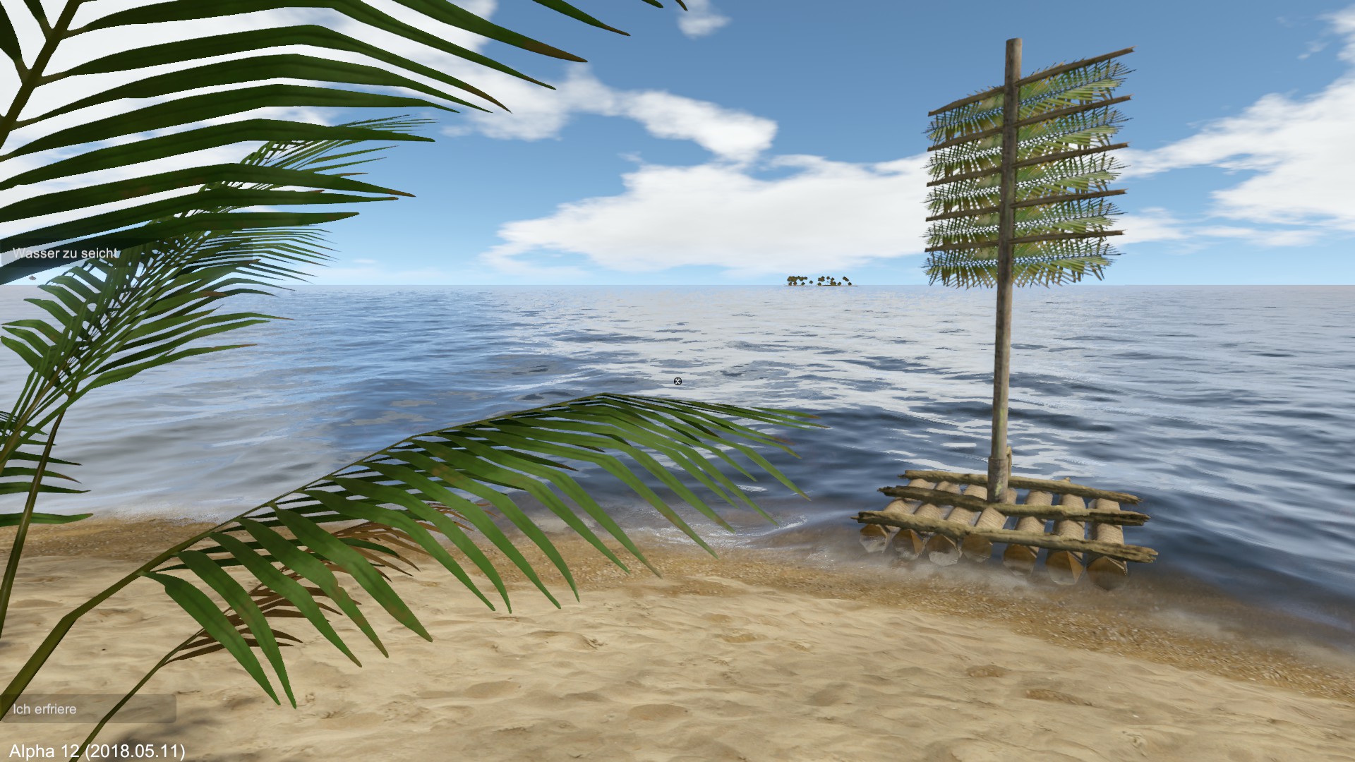 Das Floß ist im tieferen Wasser, ansonsten bekomme ich die Meldung vom seichten Gewässer.