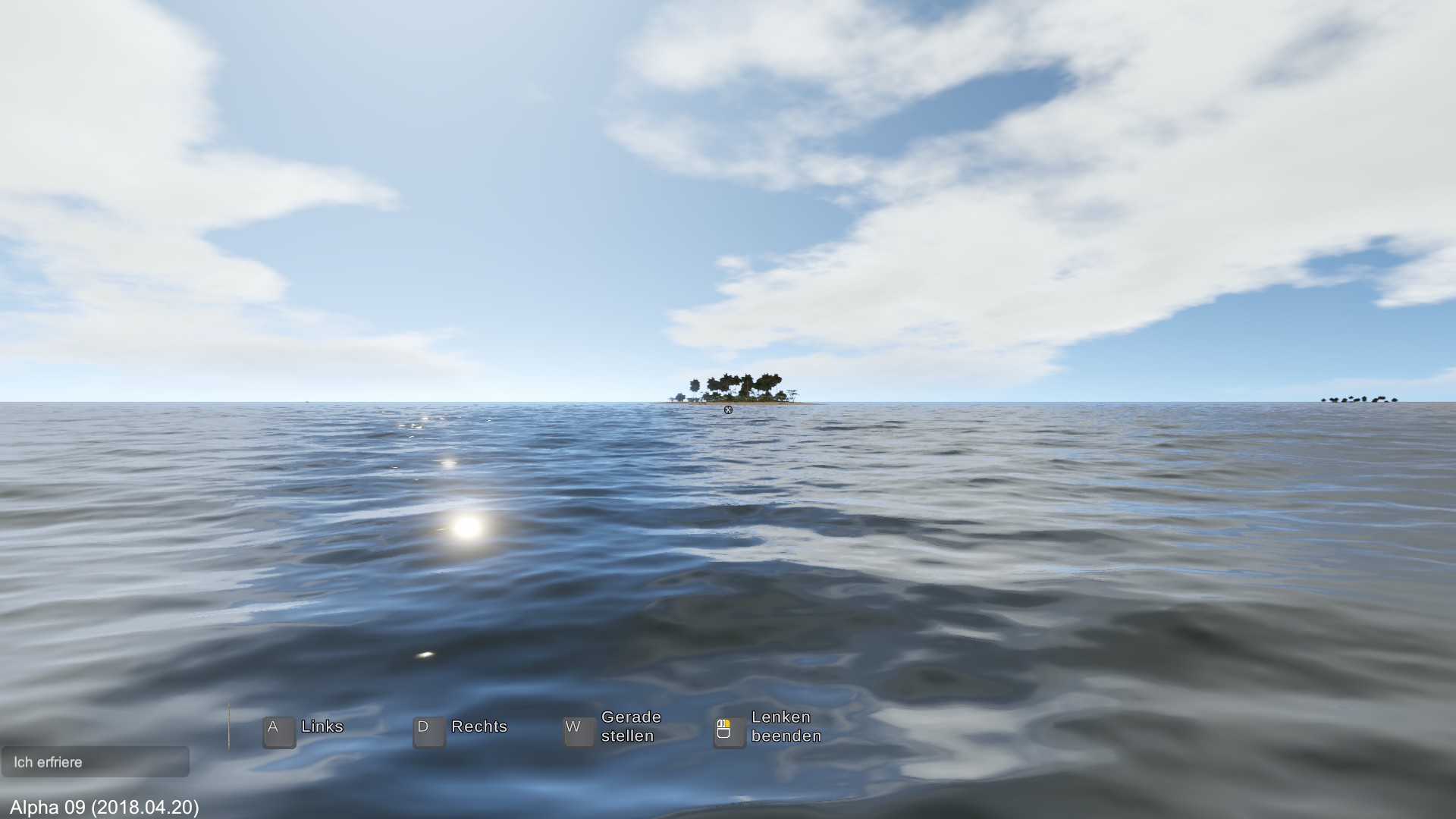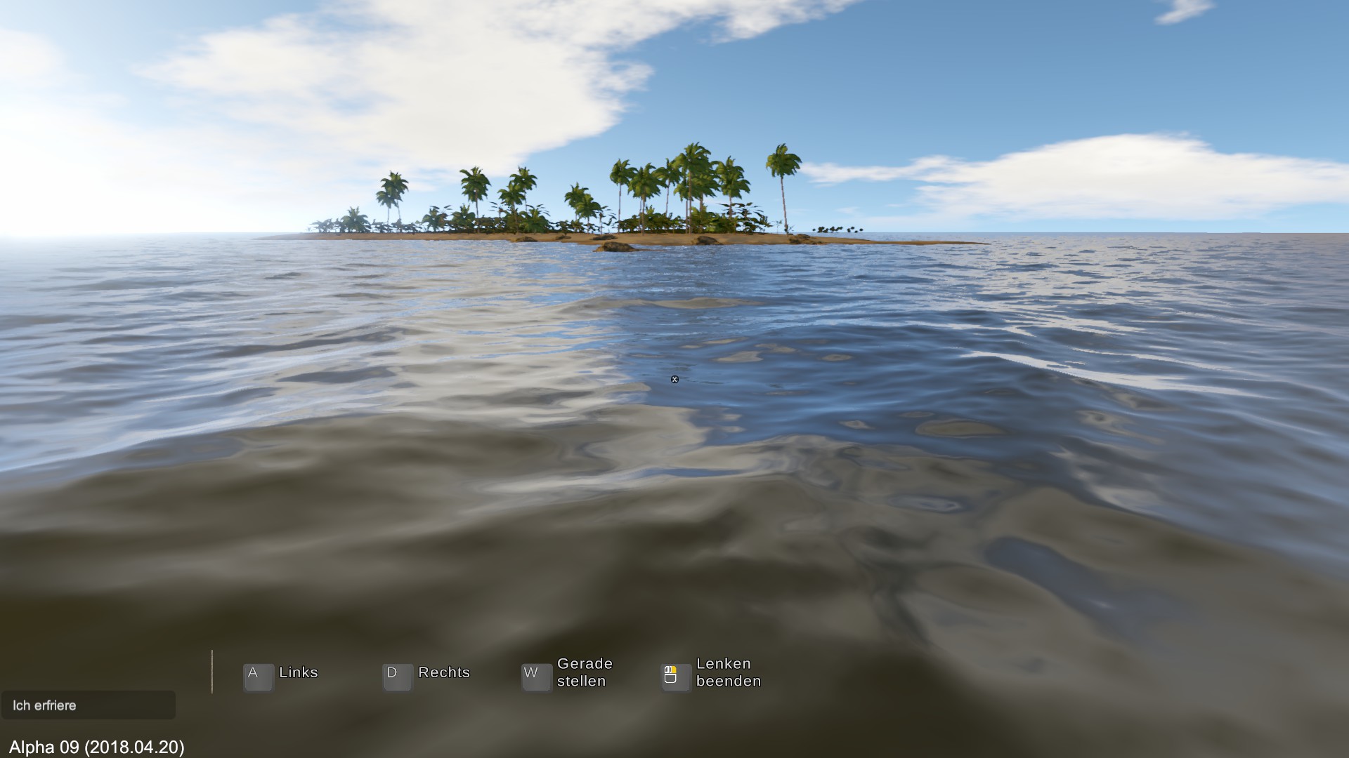 Habe die Bewegungstasten gedrückt und die Maus bewegt. Einmal konnte ich das Floß quasi auch als U-Boot nutzen.