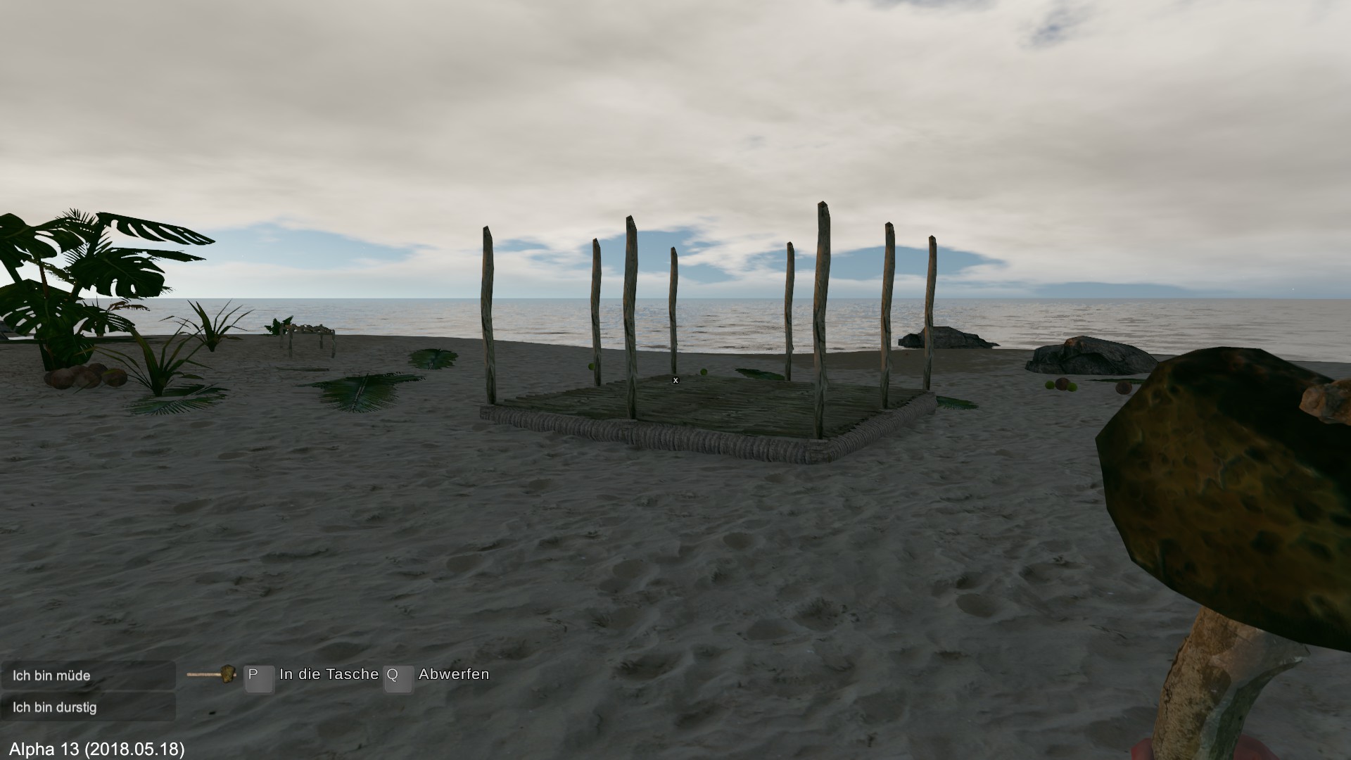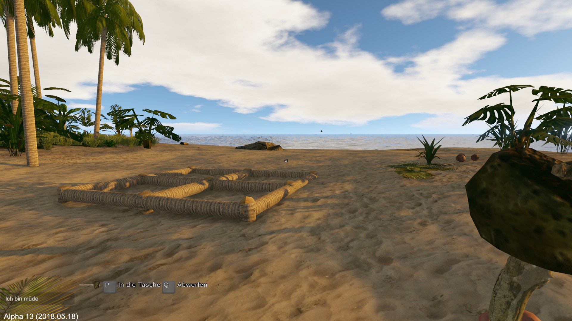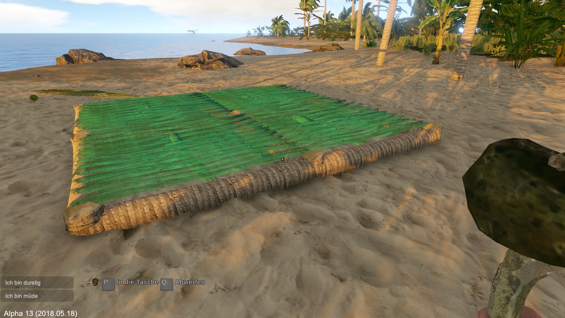 Zuerst wird ein Floß gebaut, gegessen, getrunken und geschlafen. Am nächsten Morgen verlasse ich die Insel und steuere die nächste Insel an.