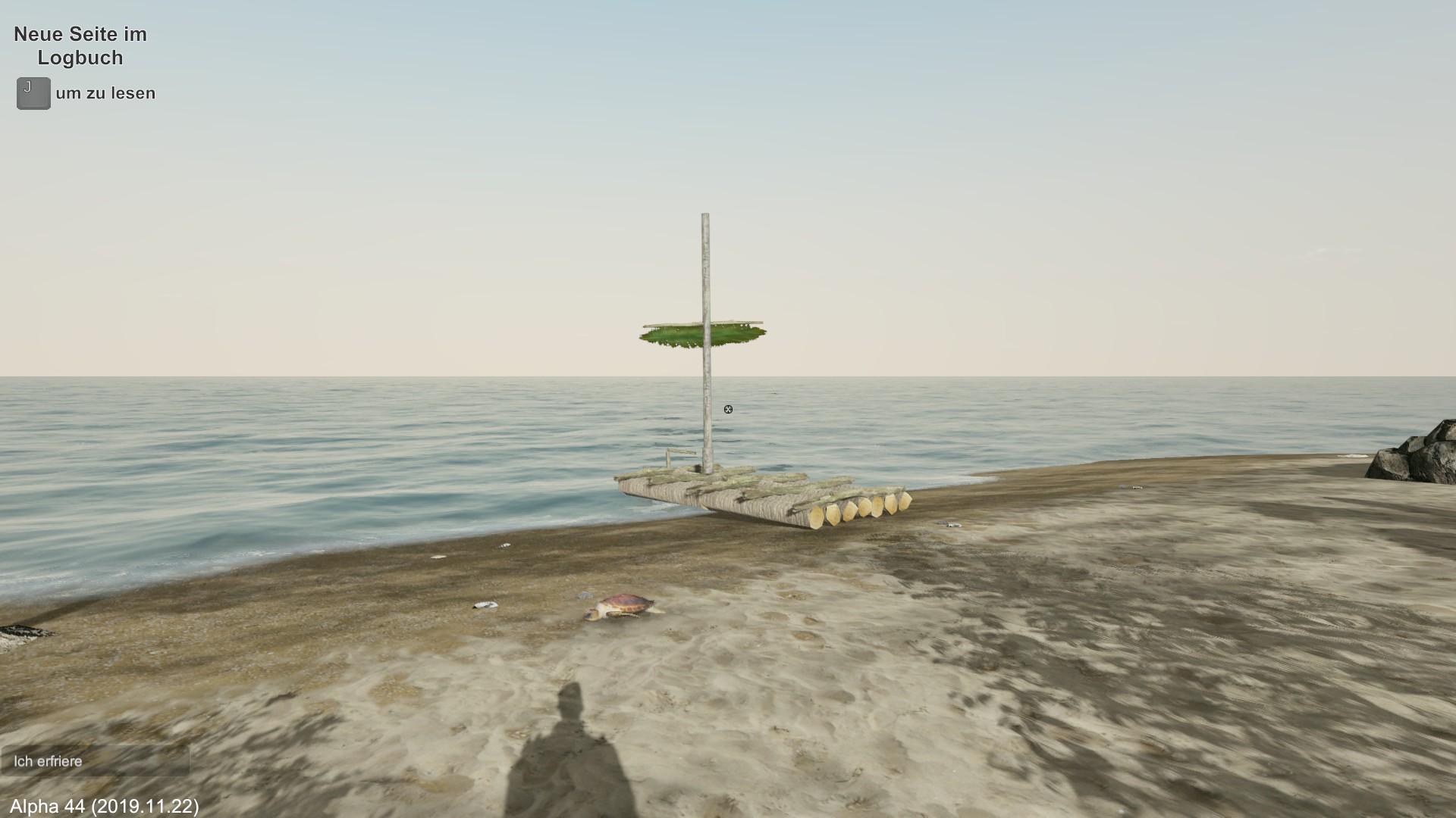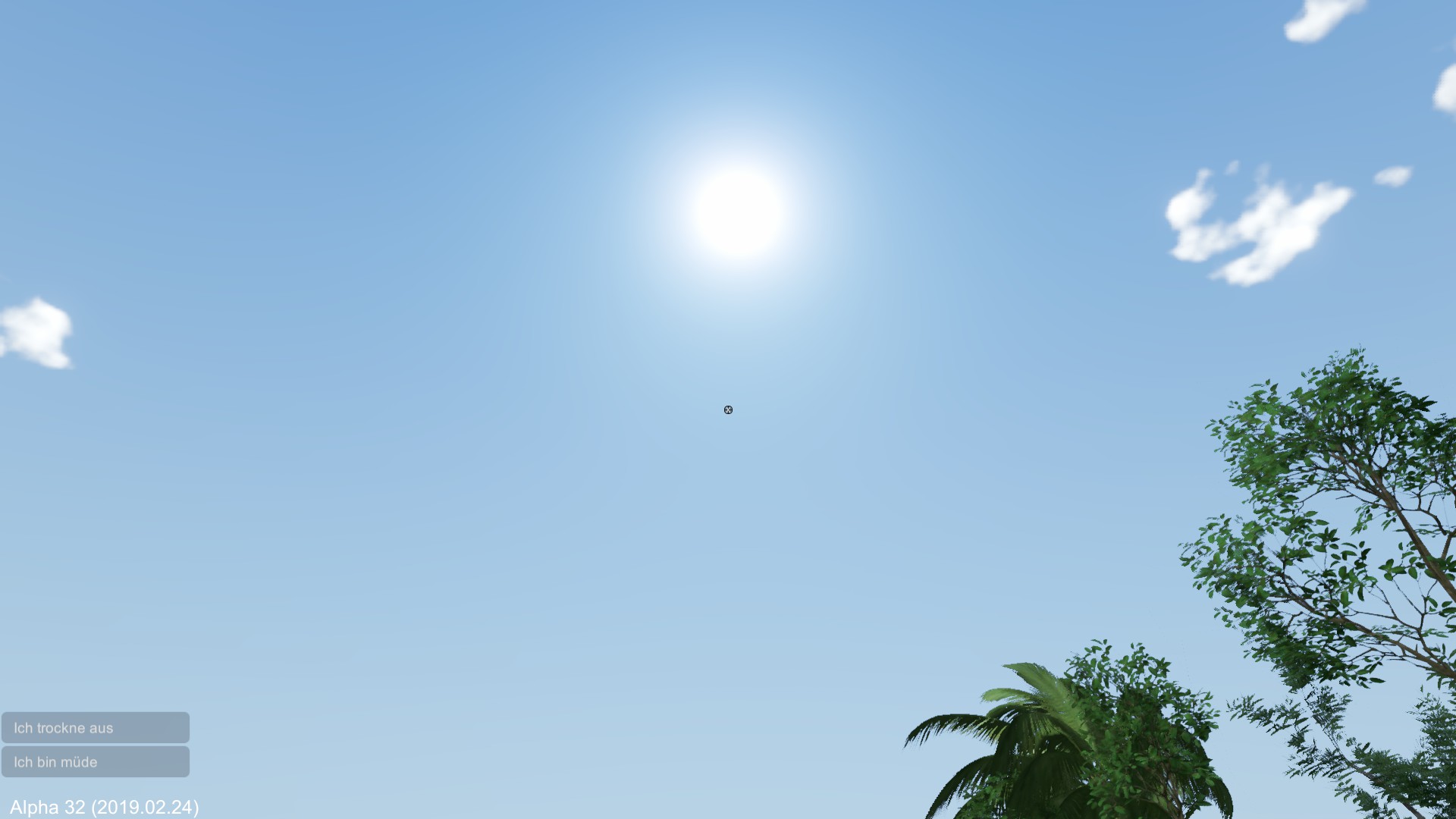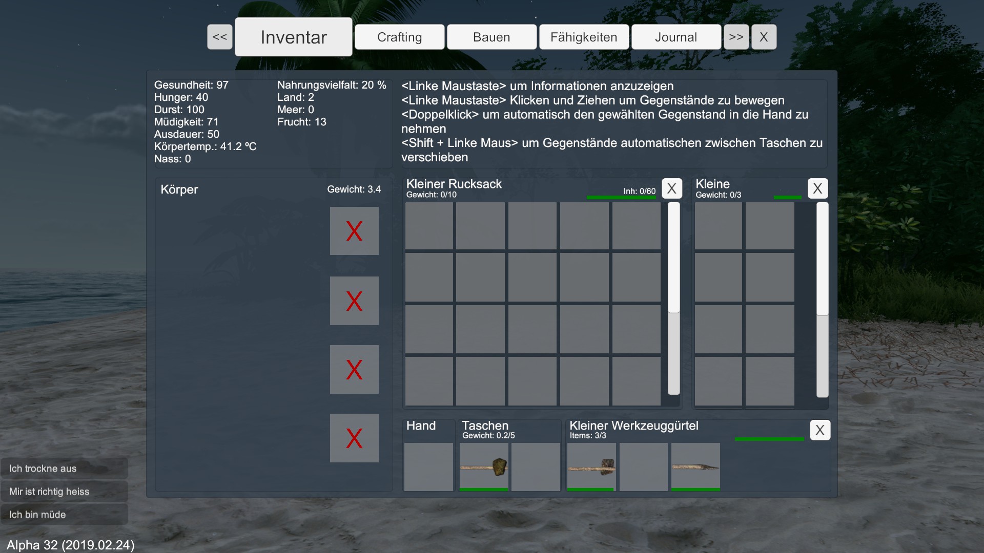 Wenn es nicht bald regnet, muss ich mich fragen, ob die Spielfigur langfristig überlebt. Ich entscheide mich erst mal zu schlafen.