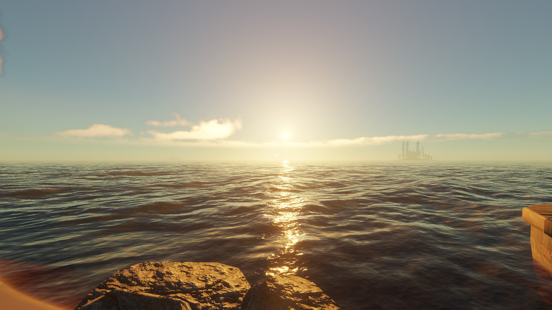 Am Anfang zeige ich mal meine Karte mit vielen selbst gebauten Inseln und einen Sonnenaufgang.