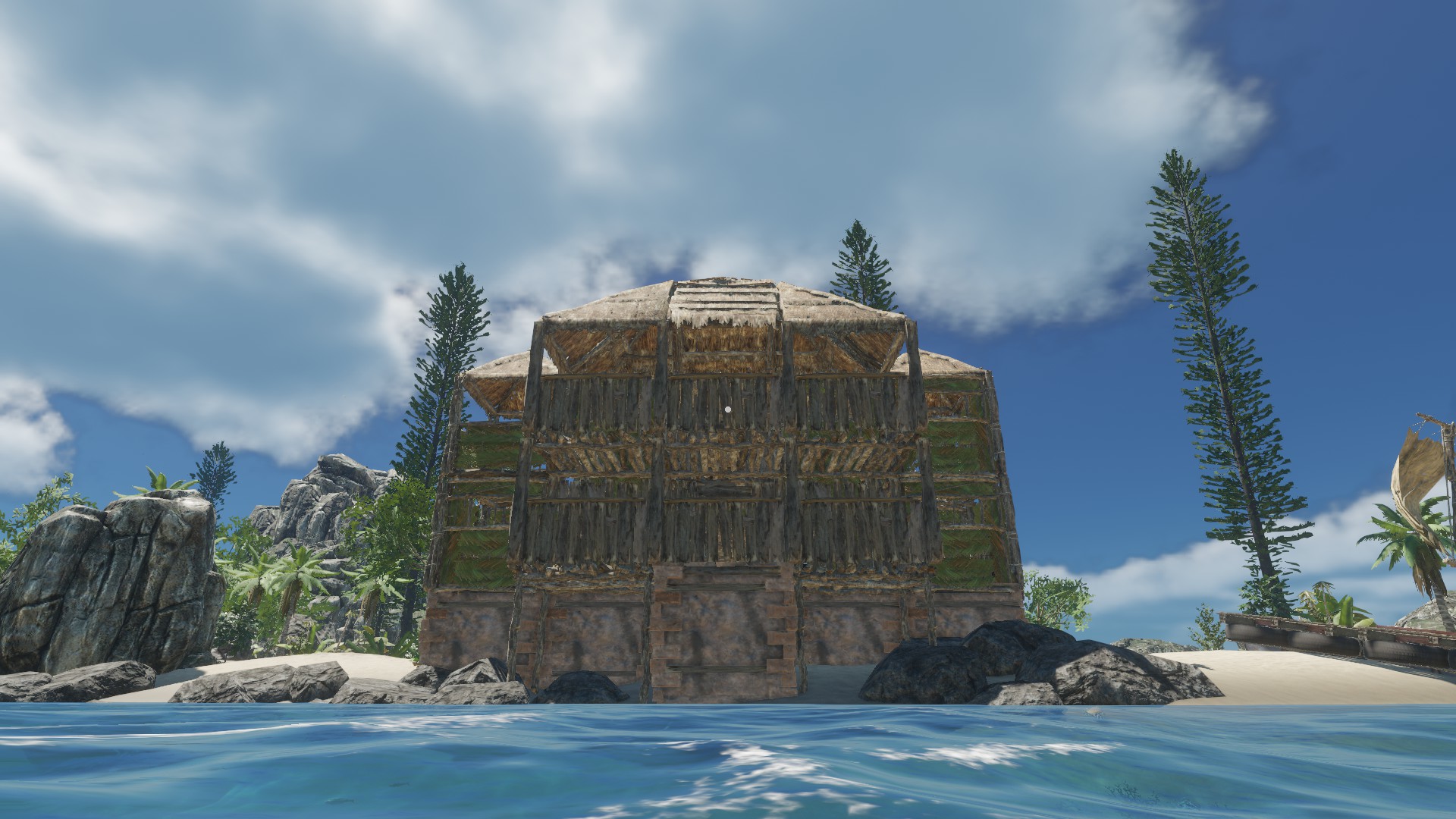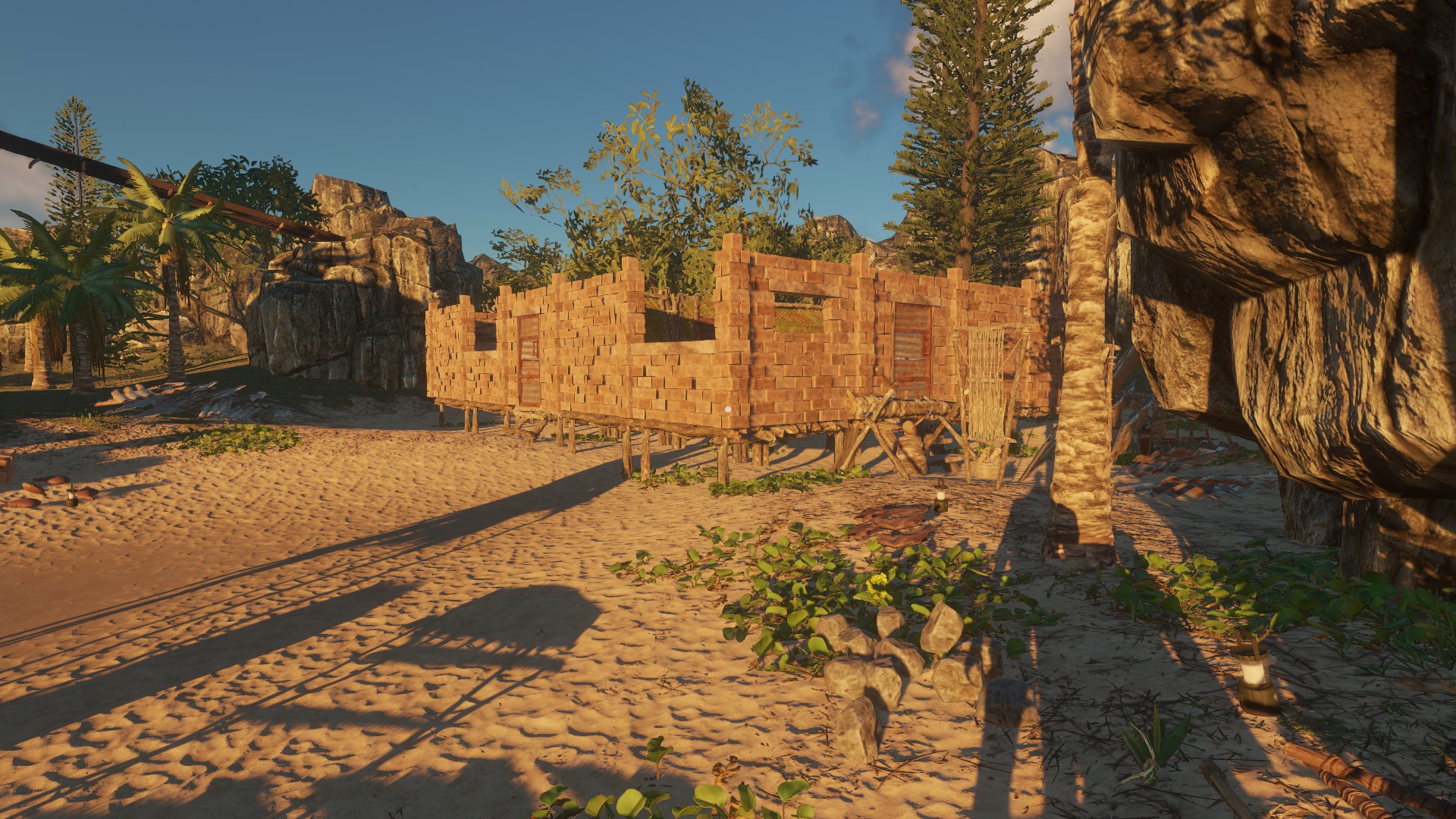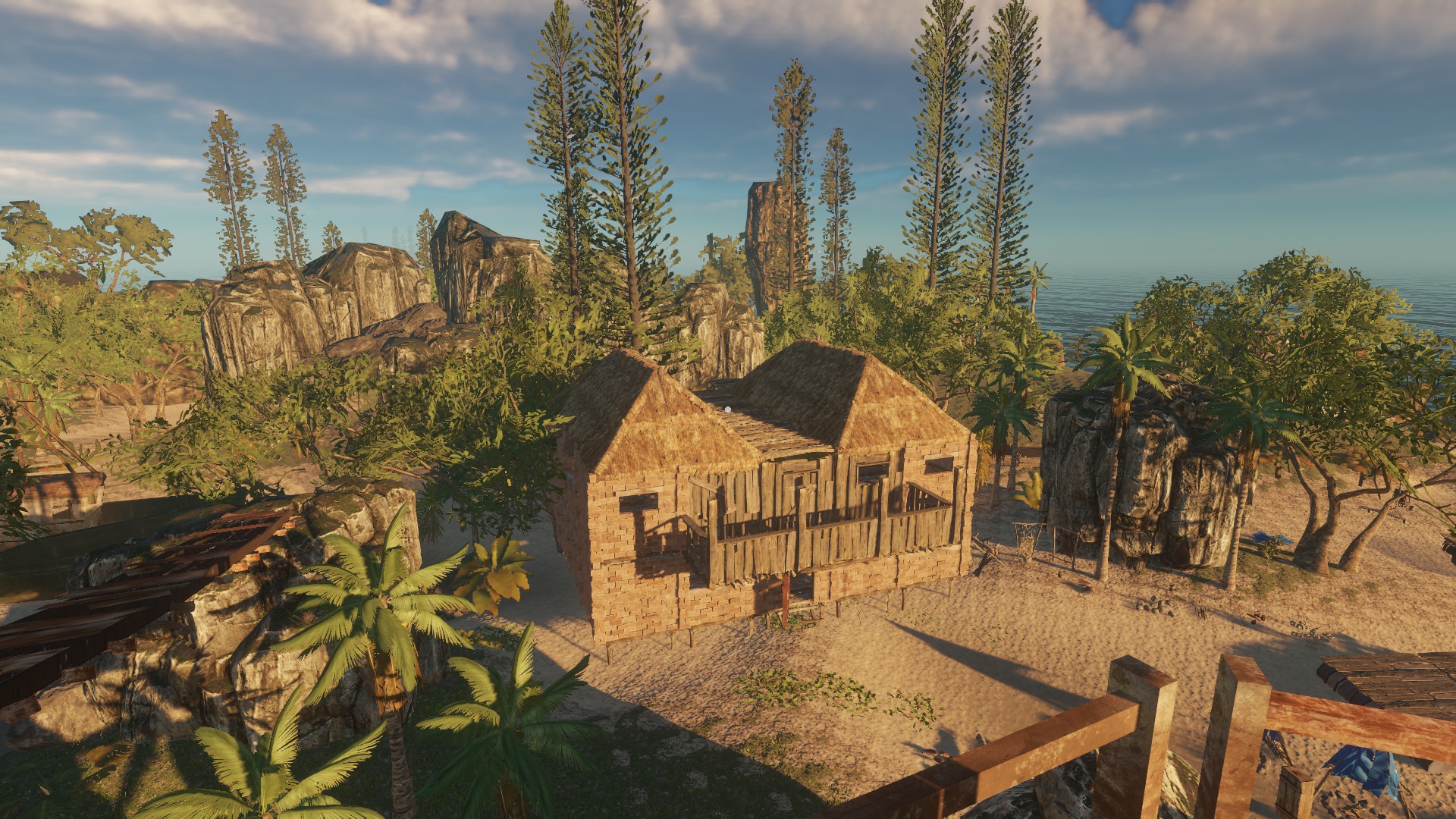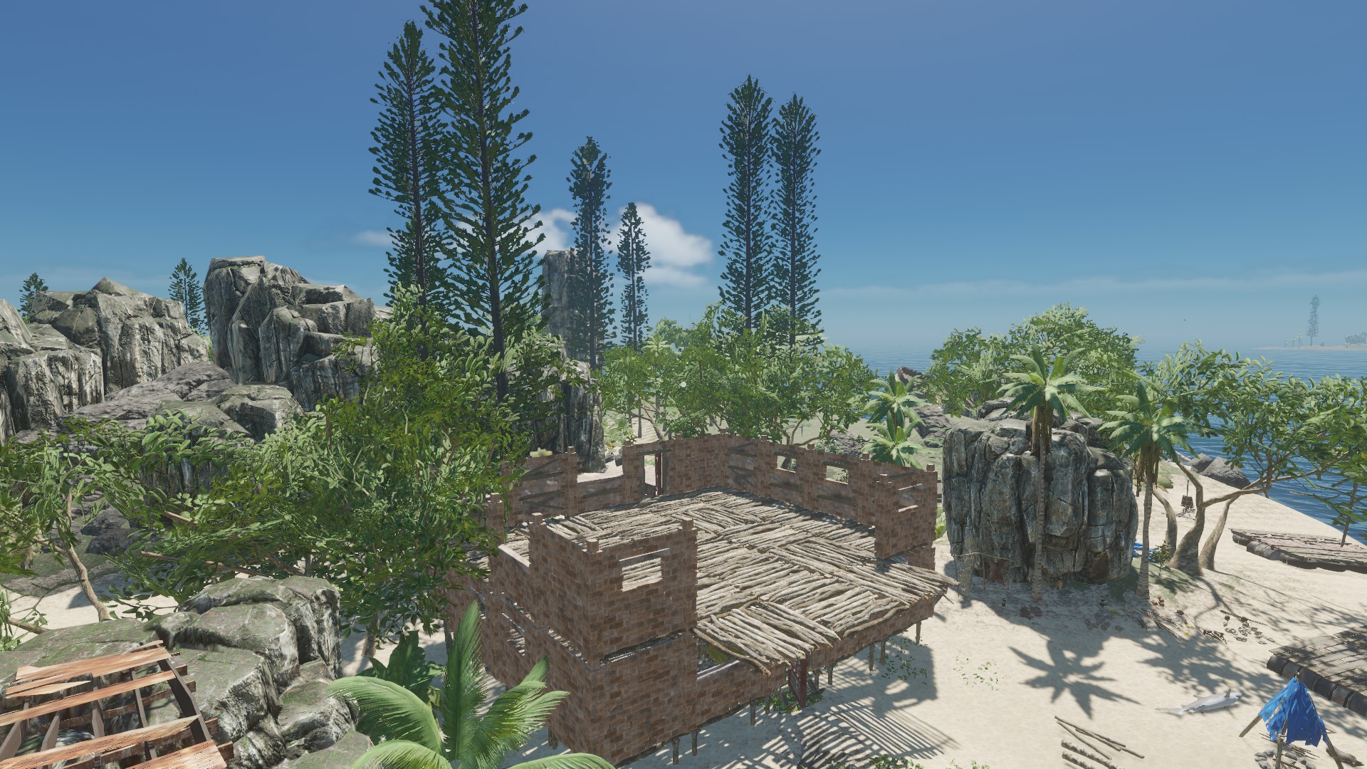 Dann habe ich mir wieder mal eine schicke Hütte gebaut. Material ist ja auf den Inseln genug vorhanden, wenn nicht,