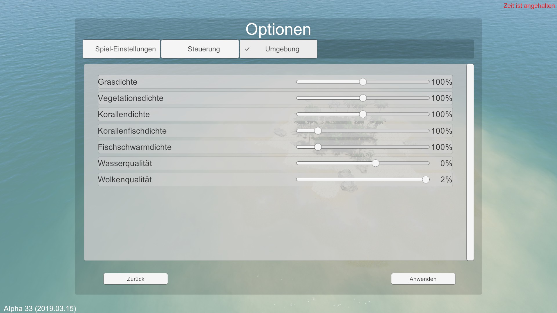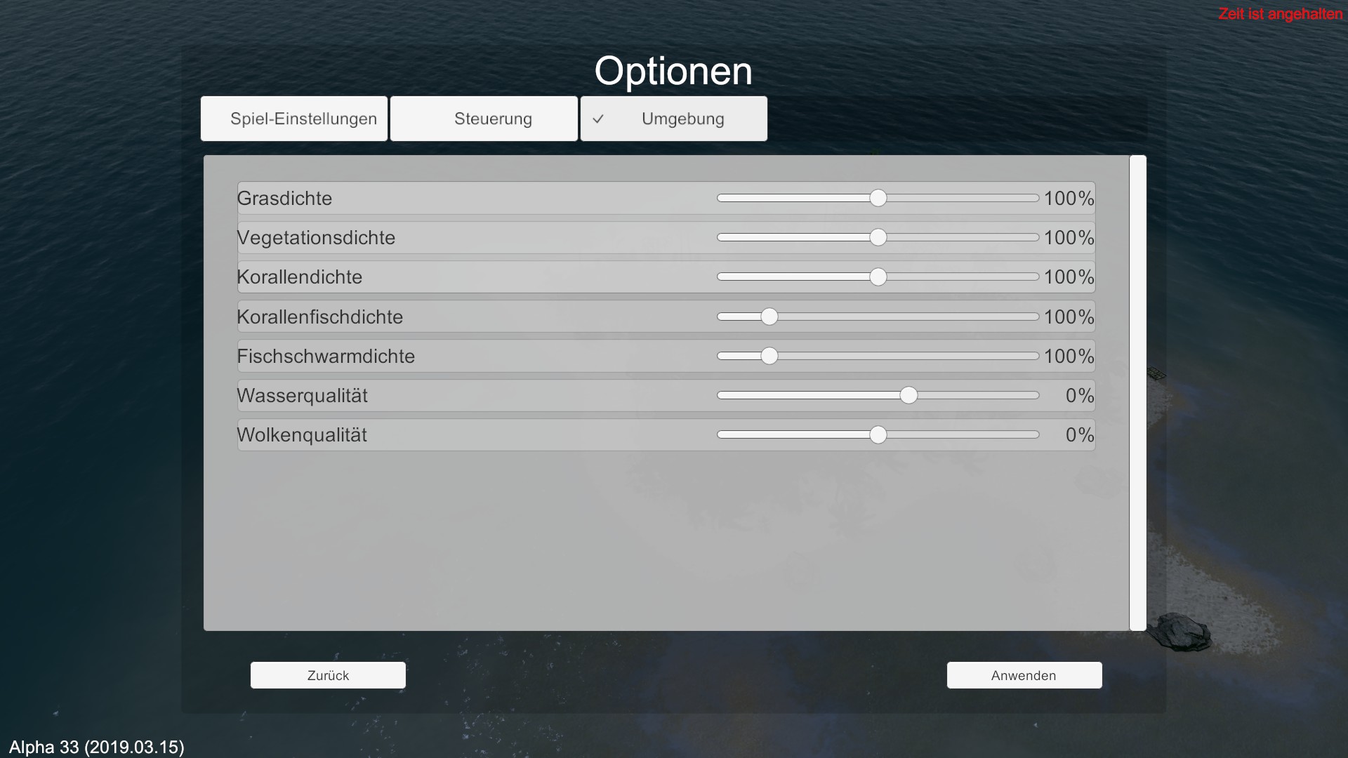 10. Hinzugefügt: Einstellung für Meereswasserqualität im Optionsmenü