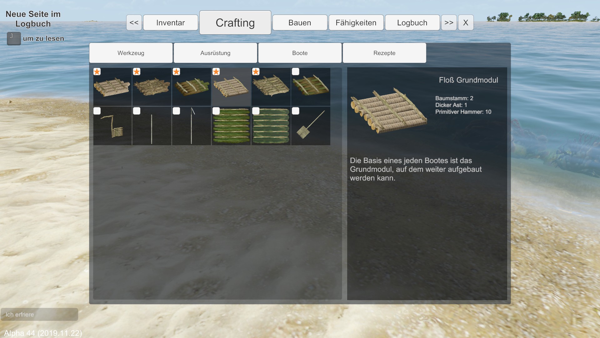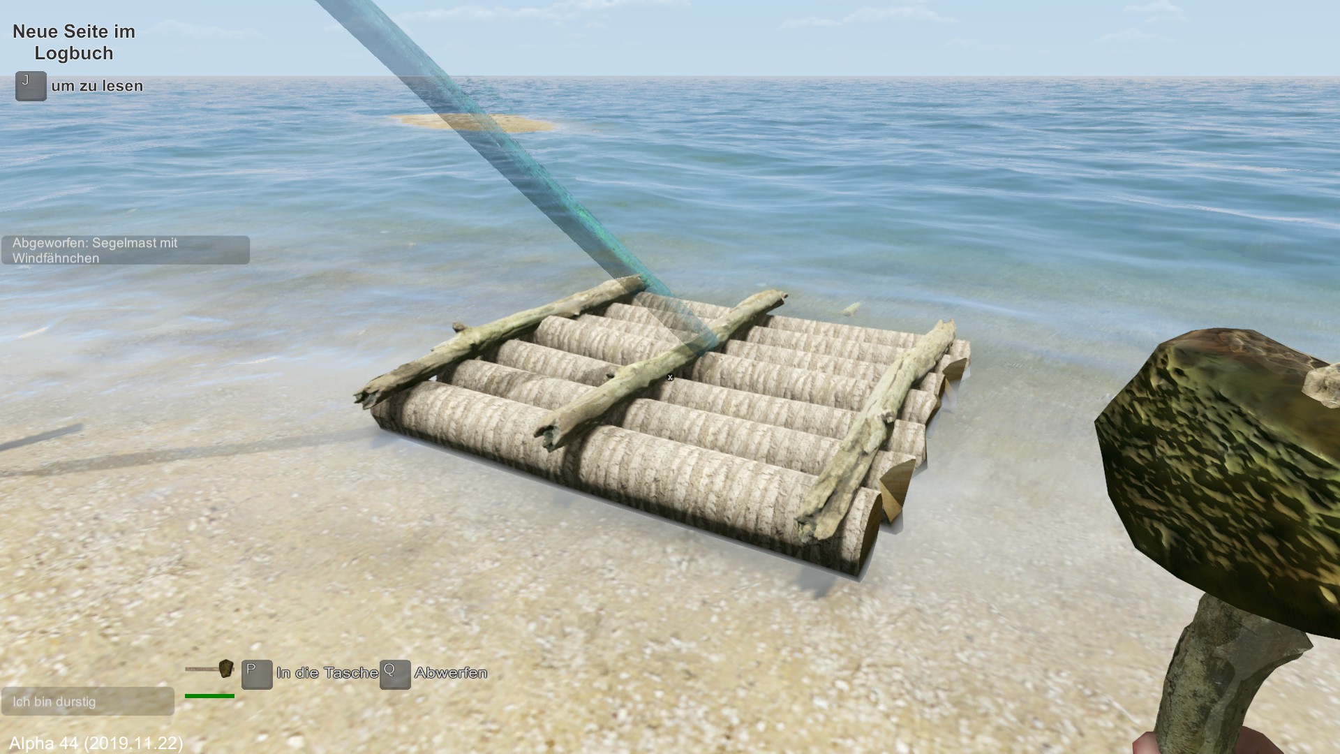 Probiere nun nochmal bitte Bernhard, da die Entwickler heute Abend einen Hotfix rausgehauen haben um die Floß-Probleme zu beheben